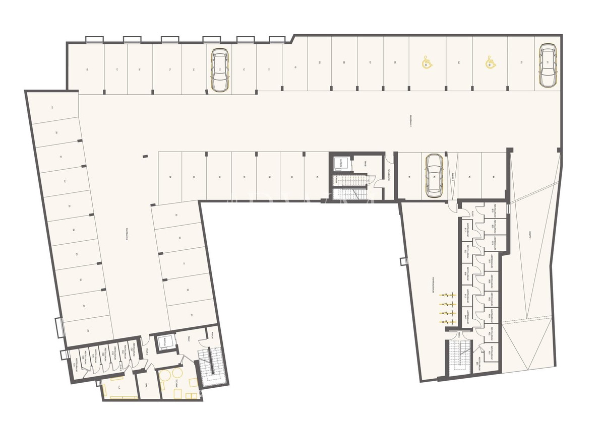 • Elektrisch betriebenes Tiefgaragentor mit Schlüsselschalter (Außenbereich) und Zugtaster (Innenbereich) sowie einer Funkfernbedienung je Stellplatz