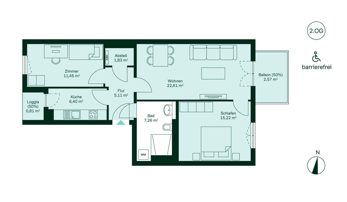 Treten Sie ein und erleben Sie die einladende Atmosphäre Ihres neuen Zuhauses. Der Flur bietet ausreichend Platz für Garderobe und führt Sie direkt in den hellen Wohnbereich. Hier können Sie gemütliche Stunden verbringen. Von hier aus gelangen Sie auf den Balkon, der ideale Voraussetzungen für sonnige Stunden im Freien bietet. Die Küche ist funktional gestaltet und bietet Raum für kulinarische Kreationen. Zwei Zimmer stehen zur Verfügung – ideal als Schlafzimmer sowie als zusätzlicher Raum, der flexibel als Gästezimmer, Arbeitsbereich oder nach individuellem Bedarf genutzt werden kann. Das Badezimmer ist modern ausgestattet und verfügt über eine bodengleiche Dusche. Ein Abstellraum und ein Keller bieten zusätzlichen Stauraum.