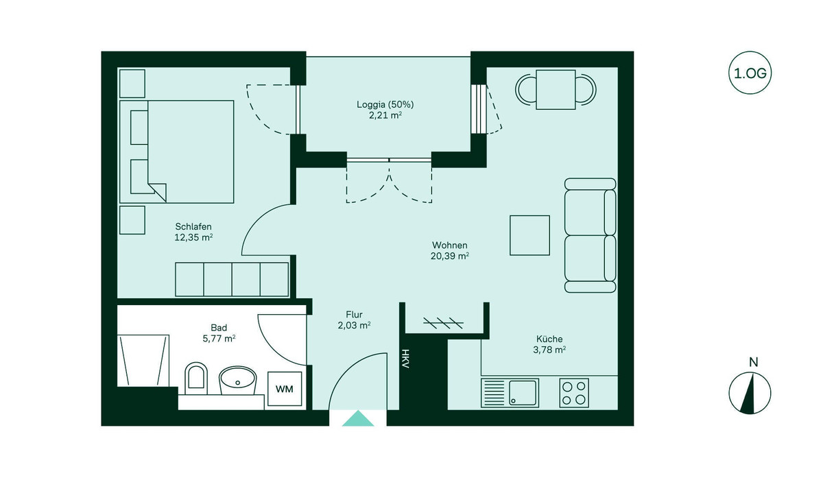 Willkommen in Ihrer neuen Eigentumswohnung. Die Wohnung bietet zwei gut geschnittene Zimmer, die zum Wohlfühlen einladen. Der Wohnbereich ist großzügig und hell, ideal für gemütliche Stunden. Die Küche ist praktisch und direkt mit dem Wohnbereich verbunden. Ihr Schlafzimmer bietet Platz für Erholung und Ruhe. Das Bad ist funktional gestaltet. Genießen Sie Ihre Loggia für entspannte Momente im Freien. Ein durchdachter Grundriss sorgt für Komfort und Gemeinschaftsgefühl.