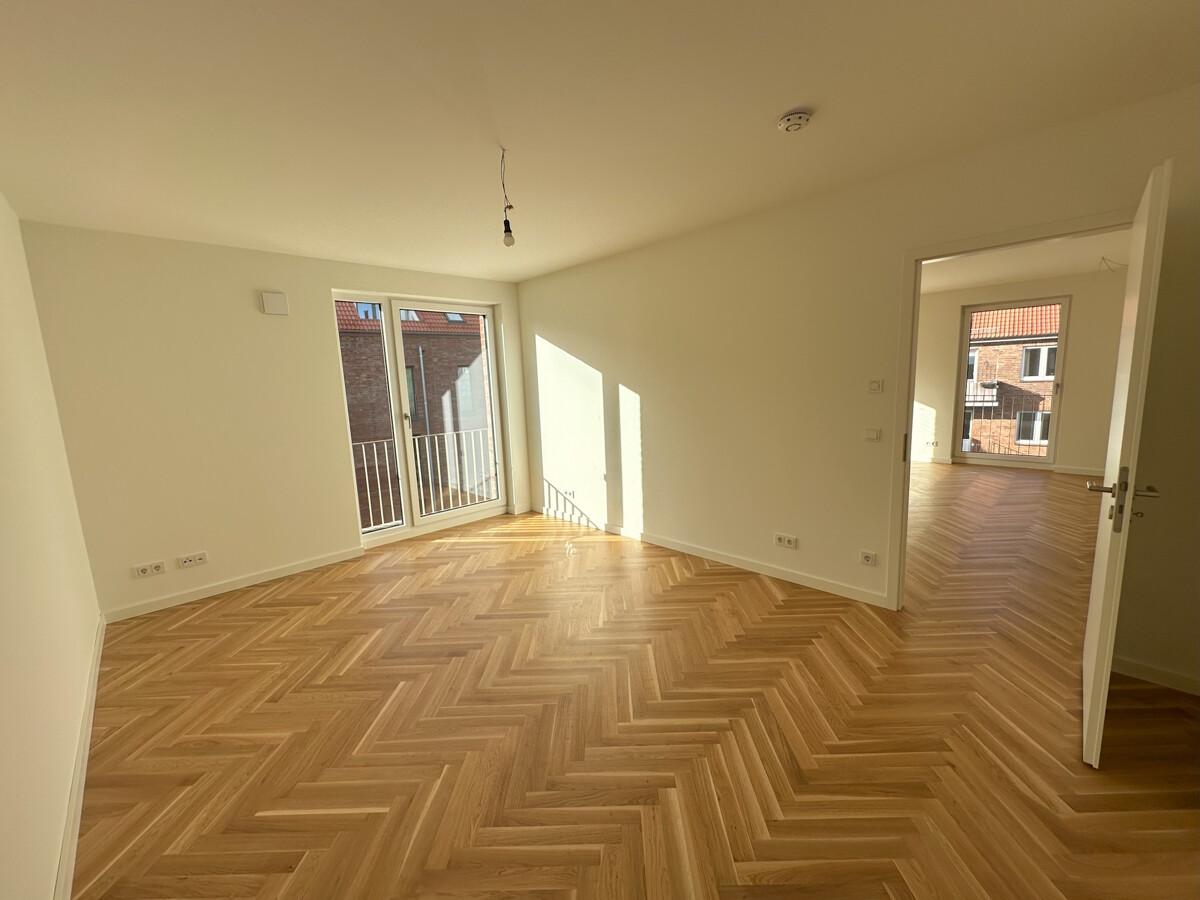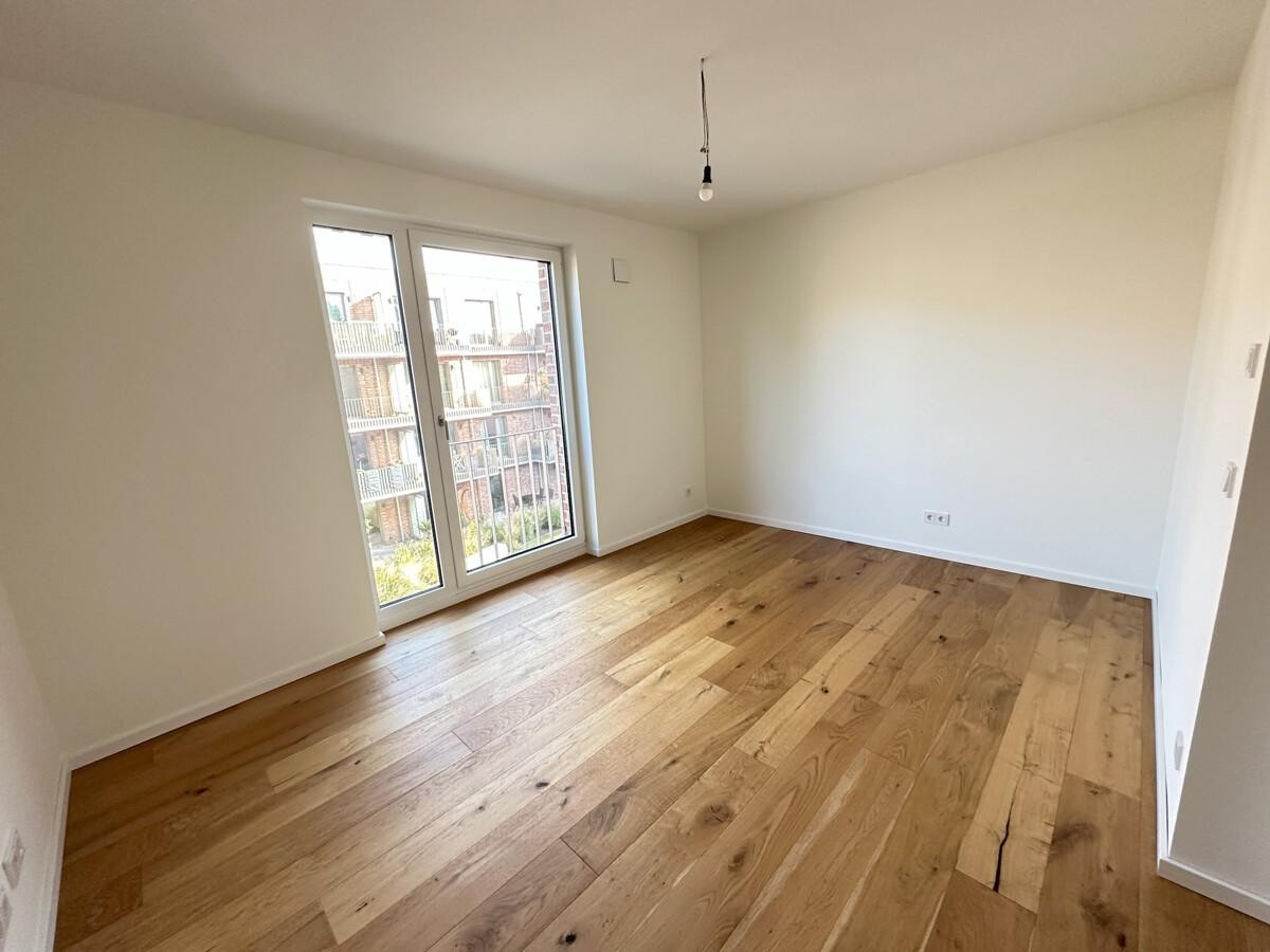 In den Wohnräumen setzen rustikal geölte Eichenholzböden stilvolle Akzente und vermitteln Behaglichkeit. Die Fußbodenheizung mit individuellen Raumtemperaturreglern sorgt dabei für gleichmäßige Wärme und ein angenehmes Raumklima. Großzügige bodentiefe Fenster durchfluten die Räume mit Licht und schaffen eine einladende Atmosphäre.
