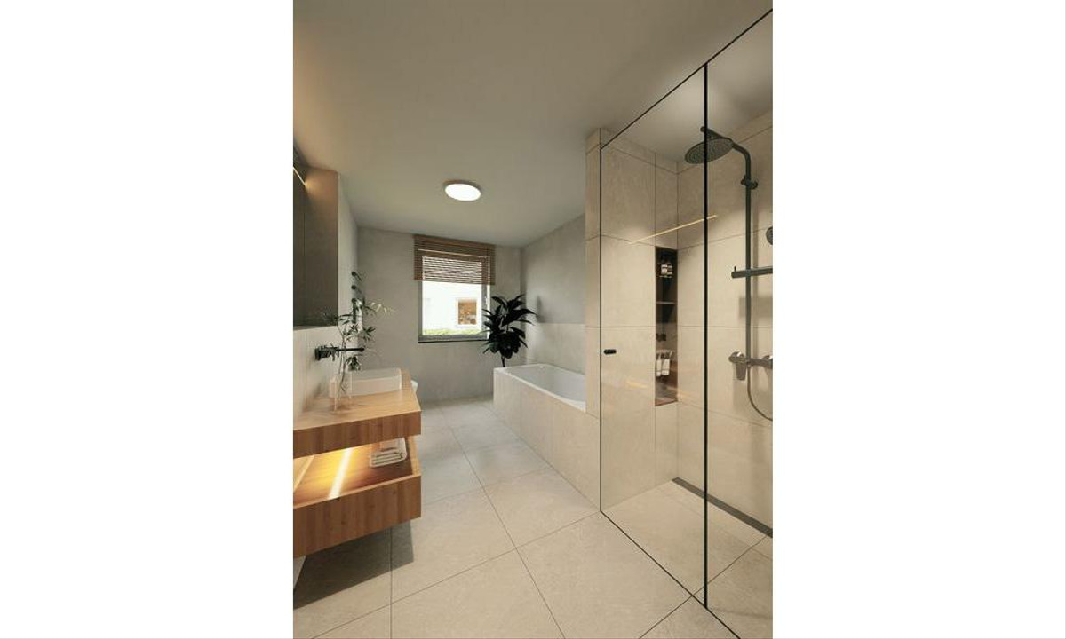 Die Bäder sind hochwertig ausgestattet – mit bodengleichen Duschen für zeitlose Eleganz. Barrierefreie Wohneinheiten und ein Aufzug mit direktem Zugang zur Tiefgarage garantieren maximalen Komfort. Jede Wohnung verfügt über einen Waschmaschinenanschluss, großzügige Kellerabteile und Zugang zu gemeinschaftlichen Fahrradstellplätzen.