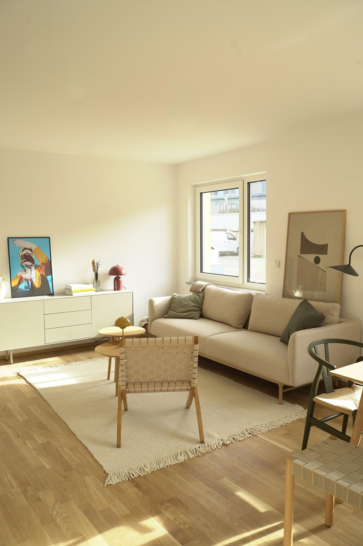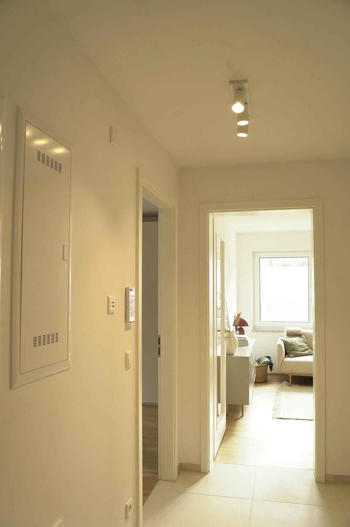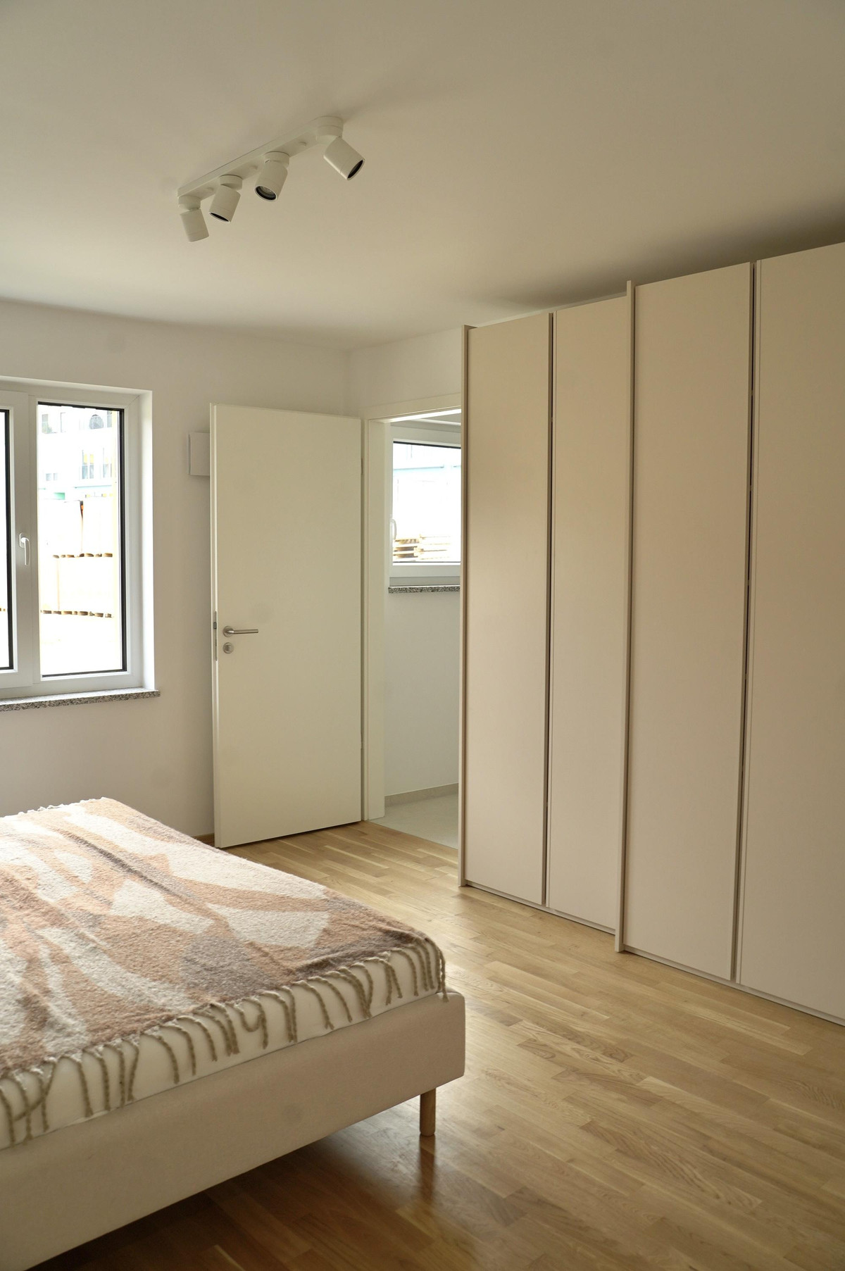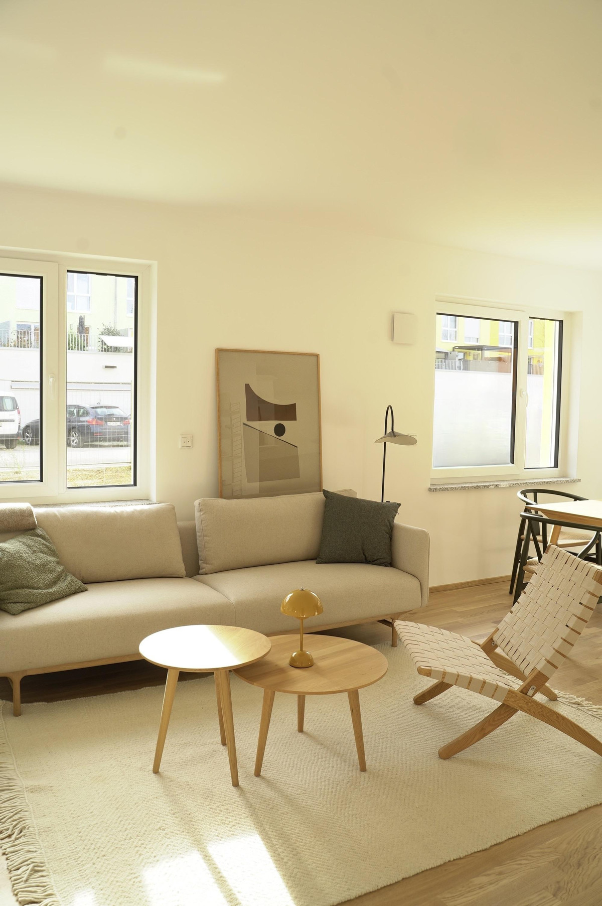 Bei der Architektur wurde sowohl auf ein ansprechendes Farbkonzept als auch die Belichtung der Zimmer besonders geachtet. Einige Wohnungen erhalten von drei Seiten Tageslicht. Es ergeben sich attraktive Sichtachsen in die Umgebung. Der private Außenbereich erweitert die Wohnung in die Natur. Stets hat man einen Platz an der Sonne. Es ist der perfekte Ort für ein wundervolles Zuhause im lebenswerten Erding.