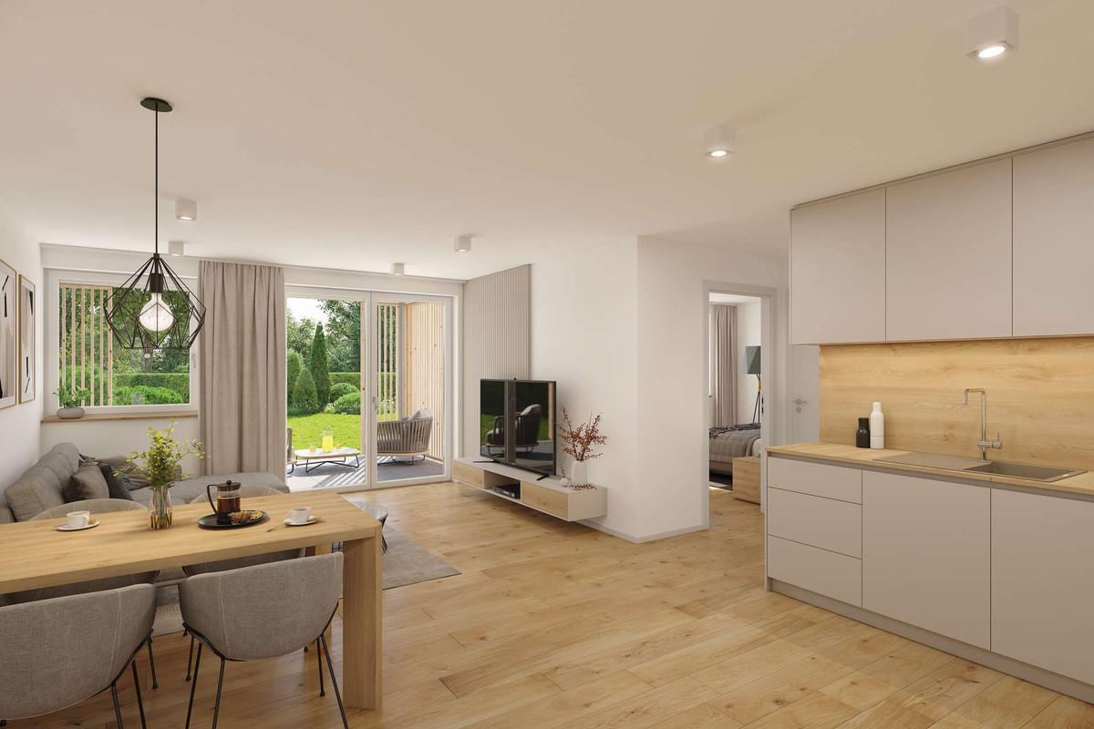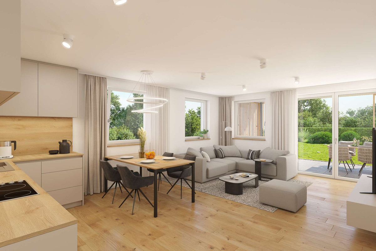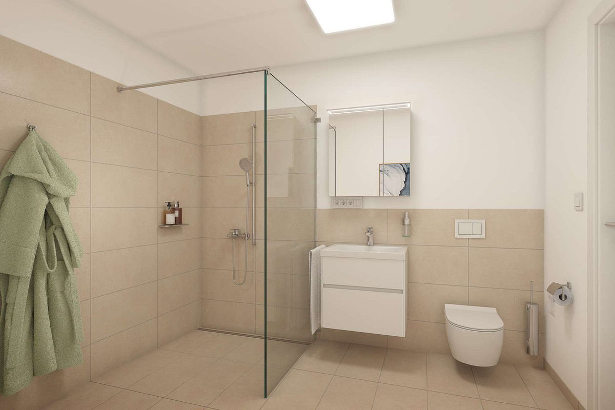 Die Ausführung erfolgt als KfW-40-Standard mit Nachhaltigkeitszertifizierung (QNG). Damit qualifiziert sich die Wohnung für Eigennutzer u.a. für einen KfW-Kredit in Höhe von 150.000 € (für Familien oder Kapitalanleger gibt es noch gesonderte Programme, Rückfragen hierzu gerne jederzeit).