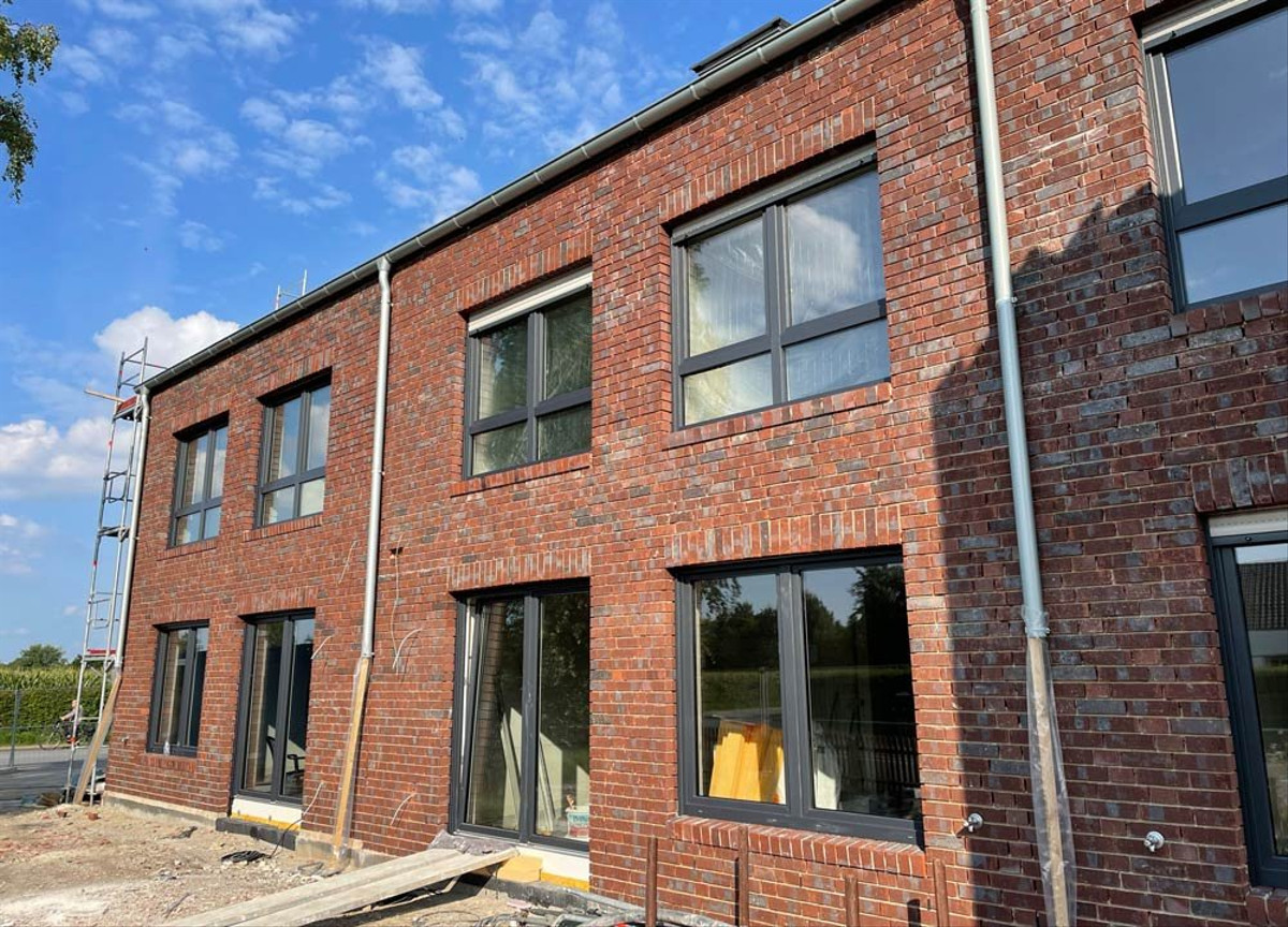 Diese 8 Reihenhäuser entstehen auf einem Kaufgrundstück in zentraler Lage von Laer. Die Häuser werden in ansprechender Optik und nach der aktuellen Energieeinsparverordnung errichtet. Alle Außen- und Innenwände werden aus Kalksandsteinmauerwerk gemäß den Anforderungen der Statik hergestellt. Die Fassade wird mit einem Klinker versehen, die Innenwände aller Geschosse erhalten einen einlagigen Gipsputz mit glatter Oberfläche.