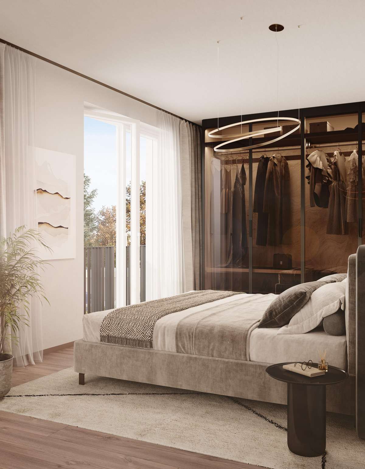 Das Ensemble umfasst 41 elegante Eigentumswohnungen mit 2 bis 5 Zimmern sowie 8 familienfreundliche Reihenhäuser – ideal für Singles, Paare und Familien, die Wert auf Qualität und Wohnkomfort legen. Die Wohnflächen von ca. 55 bis 141 m² bieten Raum für individuelle Lebensstile und Ansprüche.