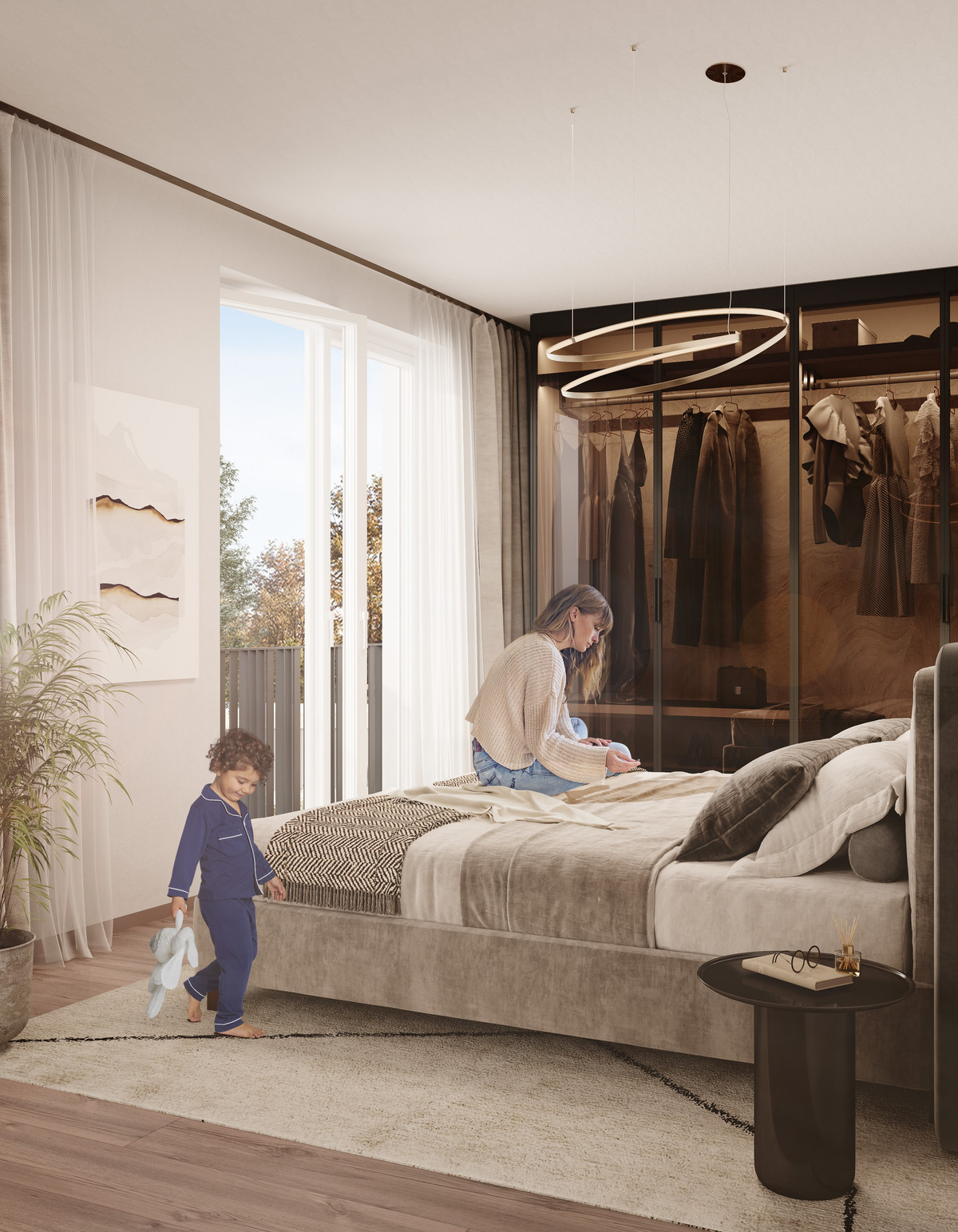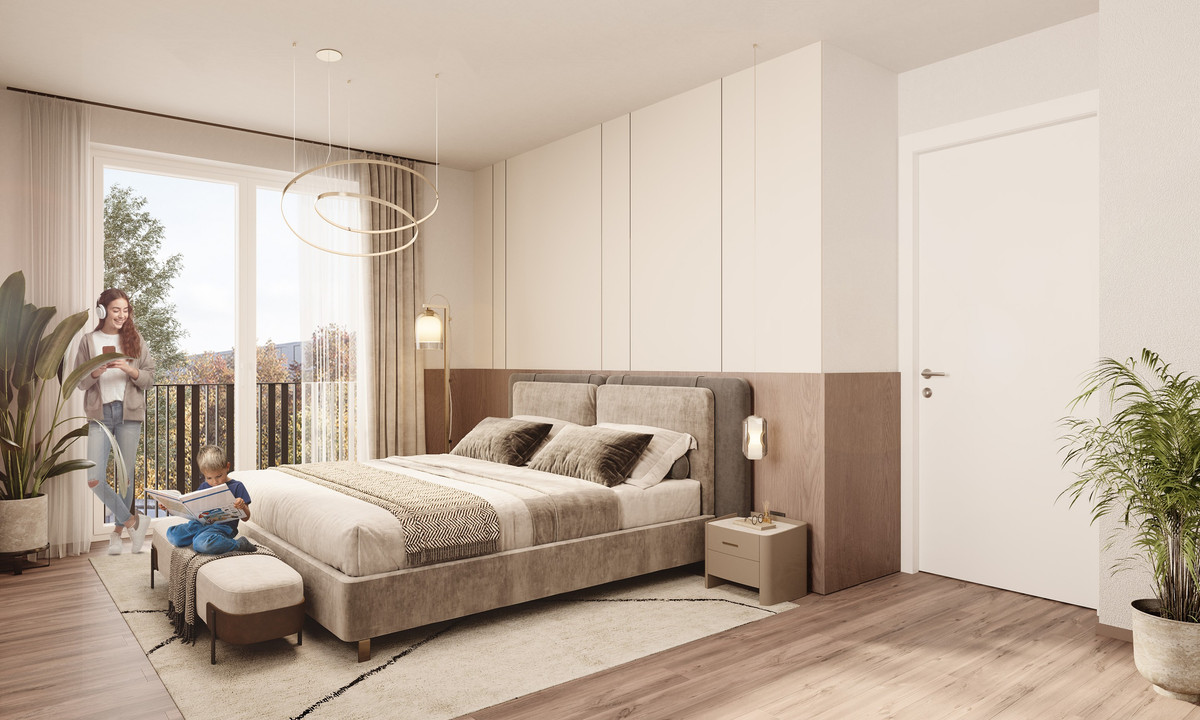 Das Ensemble umfasst 41 elegante Eigentumswohnungen mit 2 bis 5 Zimmern sowie 8 familienfreundliche Reihenhäuser – ideal für Singles, Paare und Familien, die Wert auf Qualität und Wohnkomfort legen. Die Wohnflächen von ca. 55 bis 141 m² bieten Raum für individuelle Lebensstile und Ansprüche.