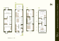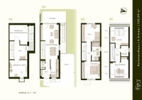 Reihenendhäuser mit 6 Zimmern und inkl. eines großflächig verglasten, hellen Hobbyraumes mit Lichthof und Austritt über Außentreppen zum Garten (Wohnnutzfläche gesamt ca. 159 m²)