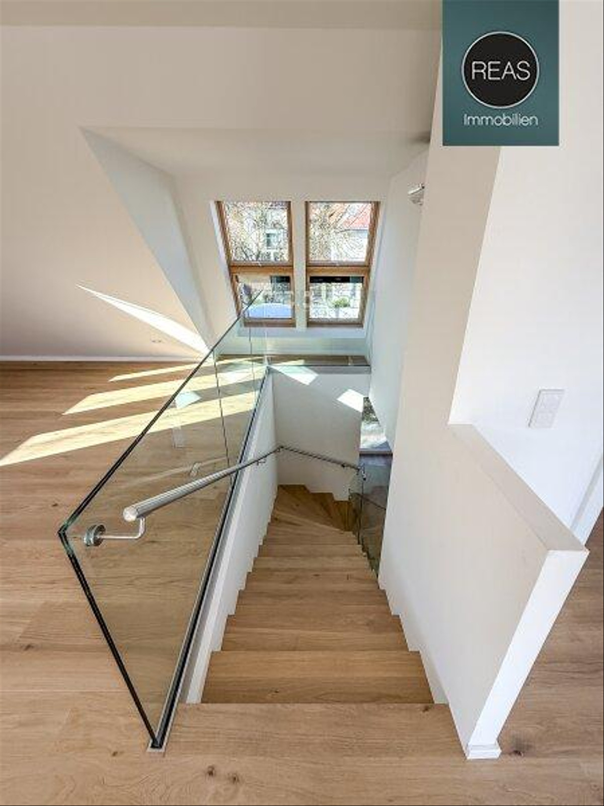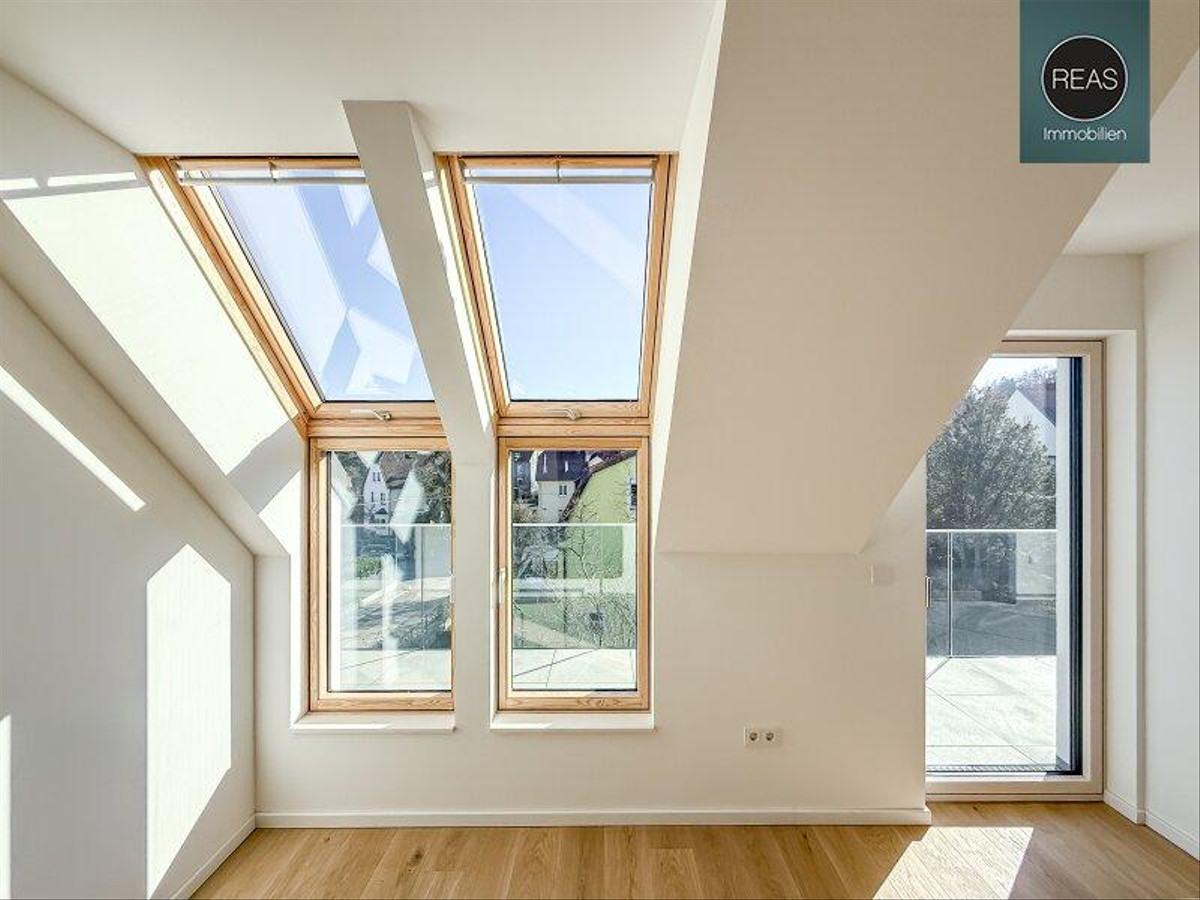 - 3-Fach verglaste Thermo-Fenster (Holz-Alu) von Josko, die exzellente Wärmedämmung bieten, ausgestattet mit elektrischen Außenbeschattungen für mehr Komfort und Sonnenschutz und zusätzlich VELUX Dachflächenfenster mit elektrischen Außenbeschattungen in der Dachgeschoss-Wohnung