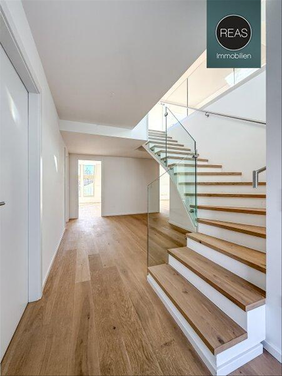 - Hochwertige Echtholz-Parkettböden für eine warme, stilvolle Optik in allen Wohnbereichen.