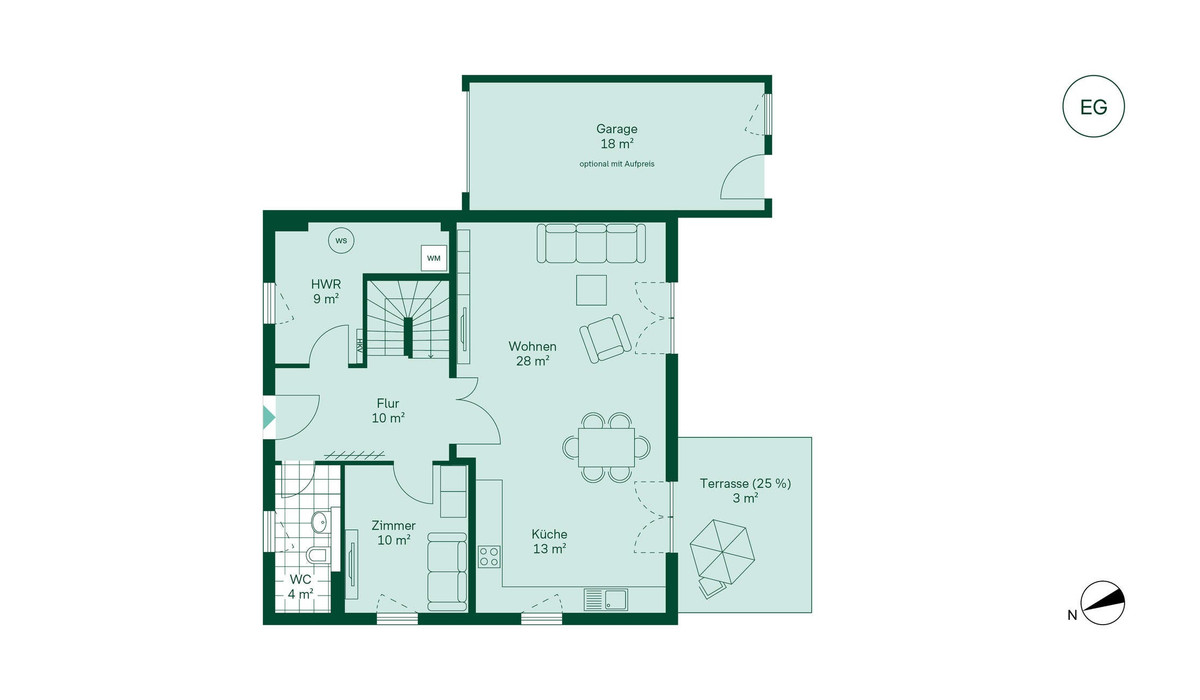 - 2 Außenstellplätze inklusive, Garage optional mit Aufpreis