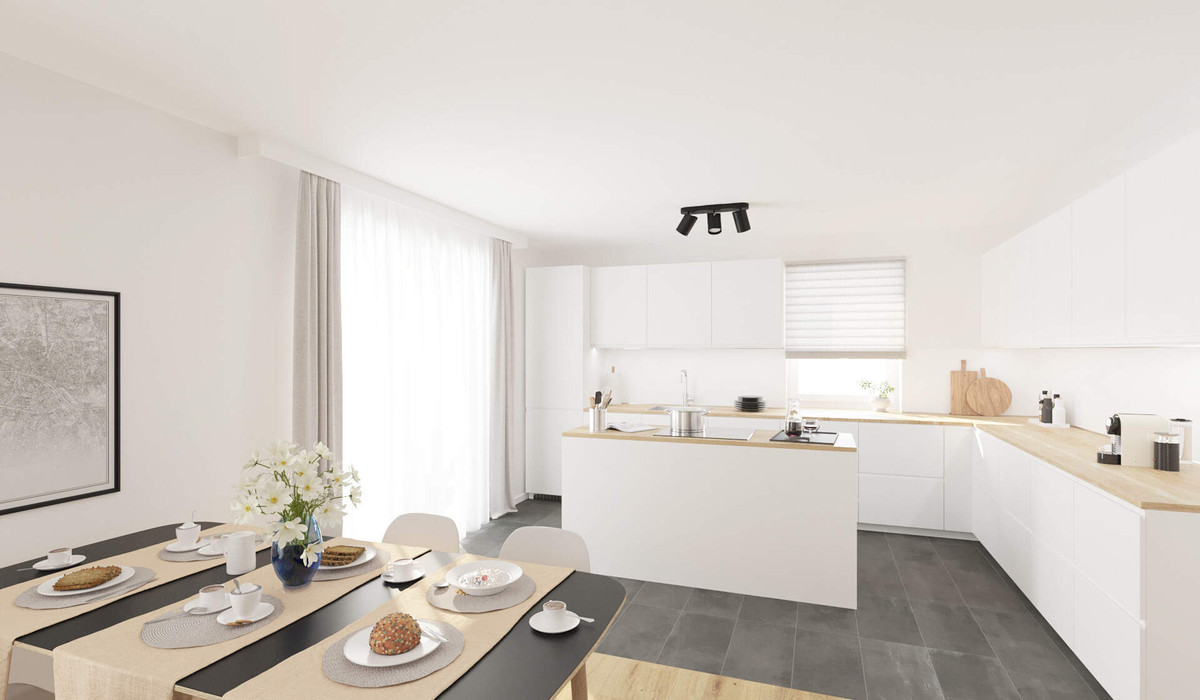 Willkommen in Ihrem neuen Zuhause. Das geräumige Erdgeschoss bietet Ihnen ein großzügiges Wohnzimmer, das durch bodentiefe Fenster erleuchtet wird und eine offene Küche integriert. Der perfekte Ort für gemeinsame Kochabende und gemütliche Stunden mit der Familie. Von hier erreichen Sie auch die Terrasse, auf der Sie die frische Luft genießen können. Ein weiteres Zimmer eignet sich ideal für Gäste oder als Home Office. Das separate WC und der Hauswirtschaftsraum sorgen für zusätzlichen Komfort.