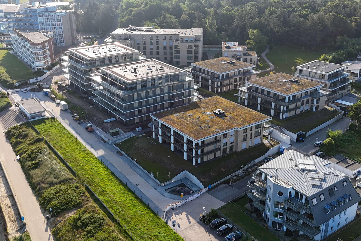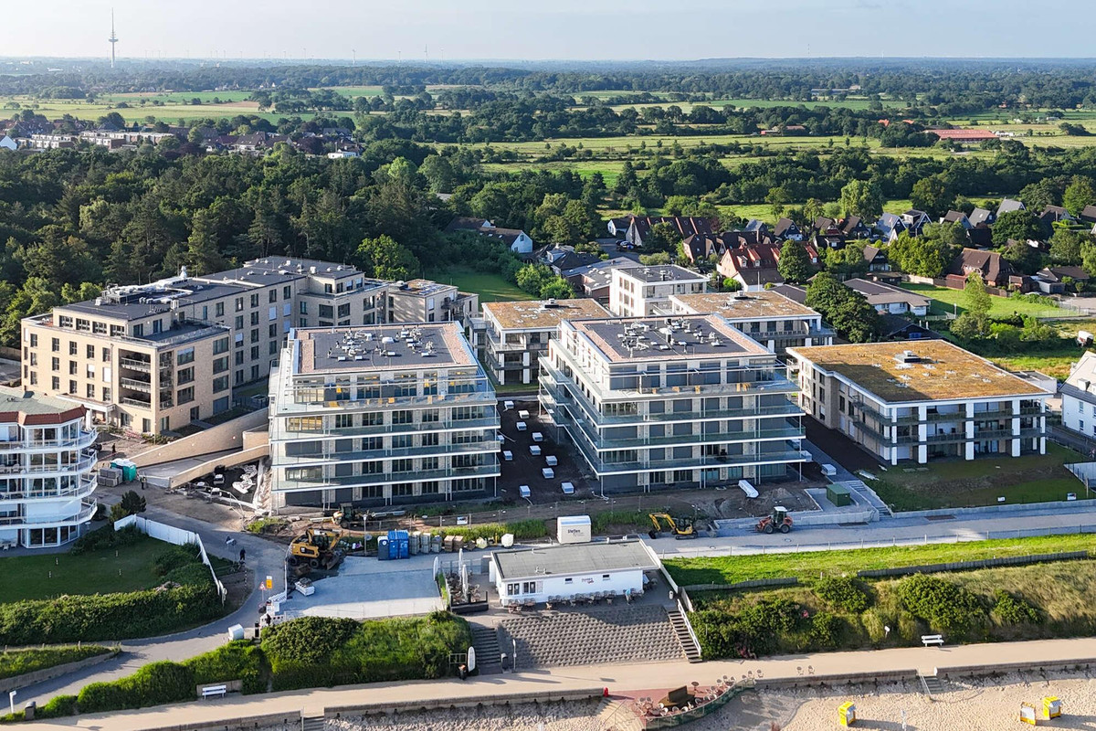 Die exklusive und komfortabel ausgestattete Wohnung besticht durch helle, freundliche Räume mit großen Fenstern in Holzoptik im Inneren, während die Aluminiumrahmen an der Außenseite perfekt an die Wetterbedingungen der Küste angepasst sind. Fußbodenbeläge sowie sämtliche Materialien stammen aus dem Premiumsegment. Zusätzlich können Sie zu der Wohnung einen Tiefgaragenstellplatz erwerben.