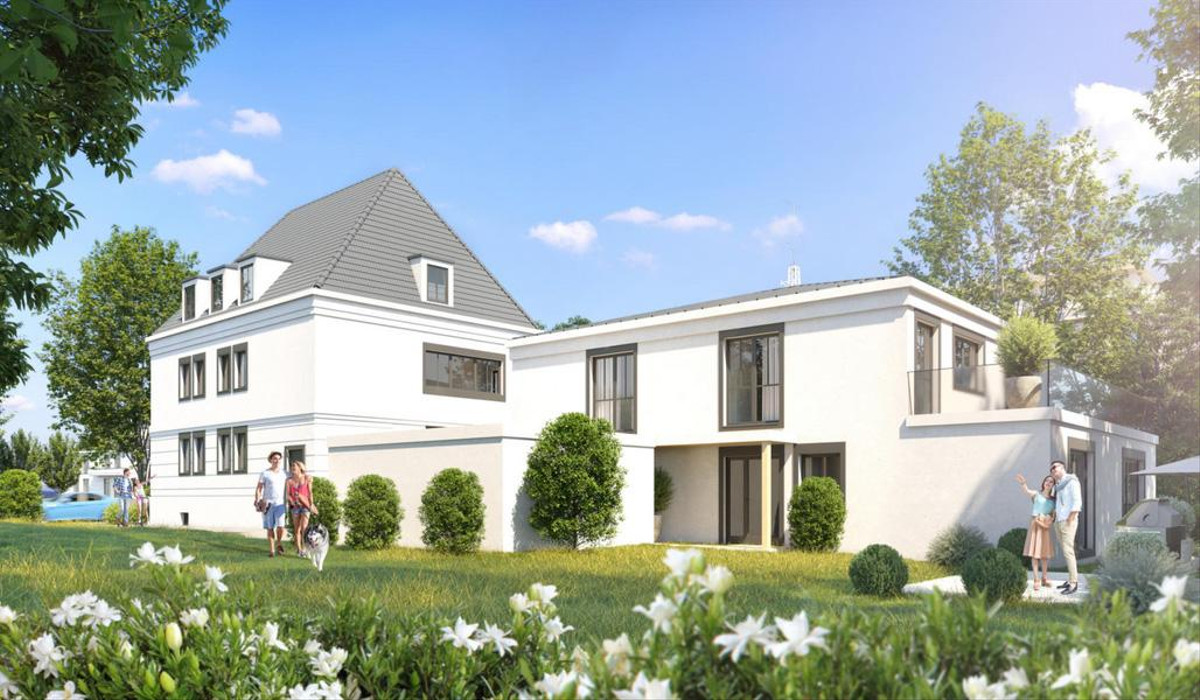 Das Projekt New-Classic besteht aus 4 Wohneinheiten im kernsanierten Bestandsgebäude und 2 Neubau-Doppelhaushälften mit 3 Garagen, 1 Carport und 4 Unterflur-Parkern. Geplante Fertigstellung der Anlage ist Q1-2026.