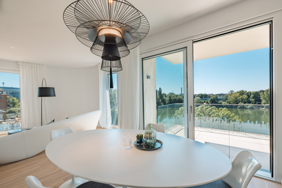 Entdecken Sie die verfügbaren Wohnungen bei einem Glas Crémant sowie ein paar leckeren Canapés und genießen Sie den traumhaften Ausblick über den See, der zu jeder Tageszeit ein Gefühl von Ruhe und Erholung schenkt.