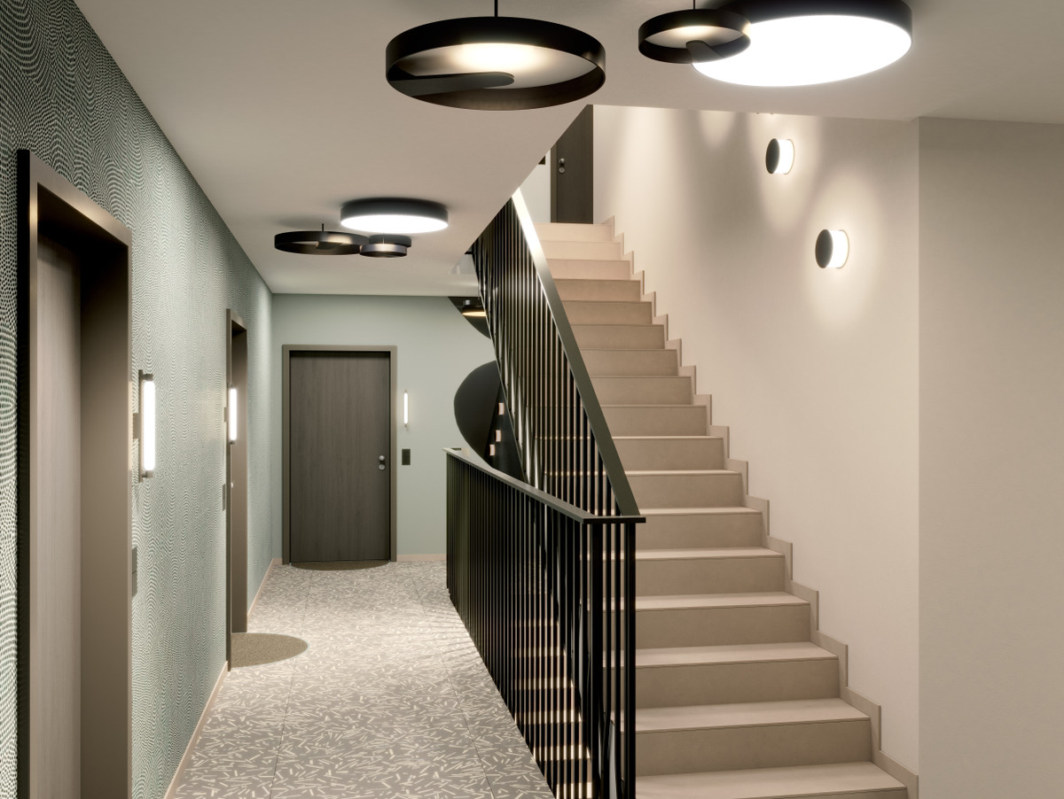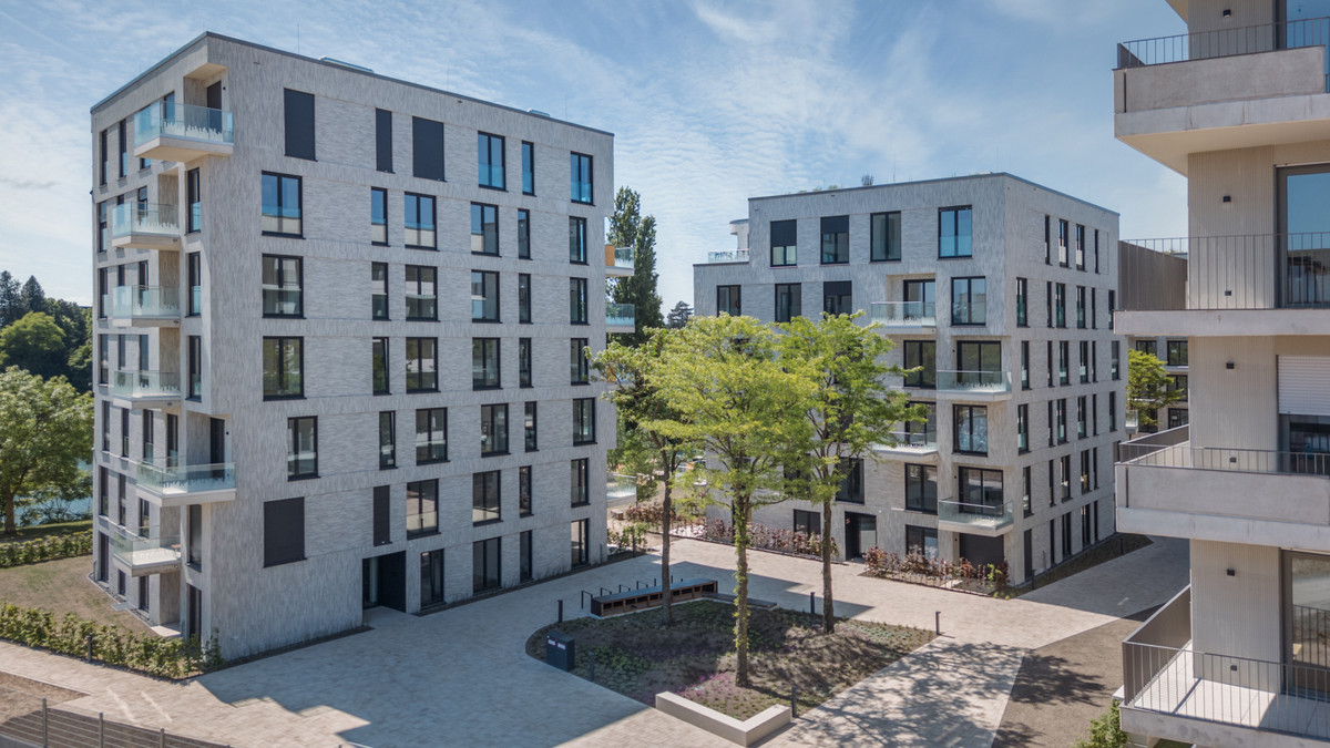 Nach Norden hin sind ruhige, klar strukturierte Fassaden mit hellem Klinker und stehenden Fensterformaten vorgesehen. Die zweigeschossigen Eingänge bilden eine repräsentative Adresse. Der Ausblick und die Qualität des Freiraums bestimmen die Architektur. Die großen Fensterformate sorgen für helle Wohnungen und einen direkten Bezug zum Albertussee. Jede Wohnung hat einen großzügigen Balkon in Richtung des Sees. In erster Reihe zum See stehen die Punkthäuser mit spektakulärem Blick über den See und das Quartier. Die perfekte Symbiose zwischen Stadtvillen und Landschaft, die anspruchsvolle Formensprache und das exklusive Lebensgefühl: All das macht PANDION ALBERTUSSEE by Hadi Teherani zu einer einzigartig begehrenswerten Adresse.