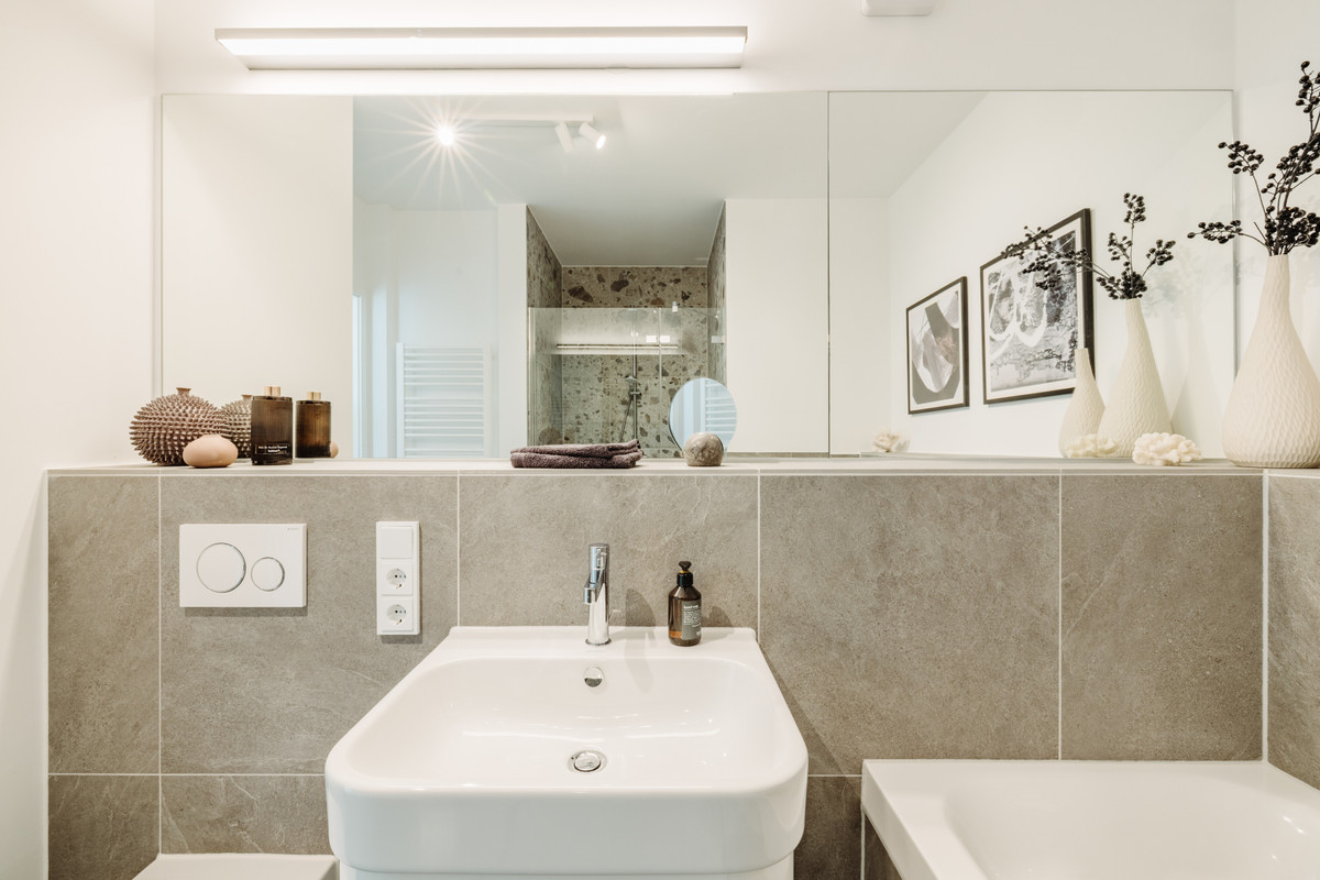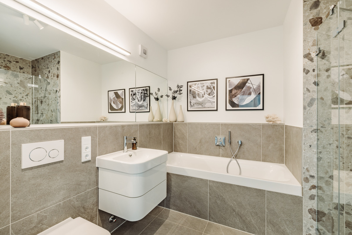 - Badezimmer mit Duravit Badewanne und bodengleicher Dusche