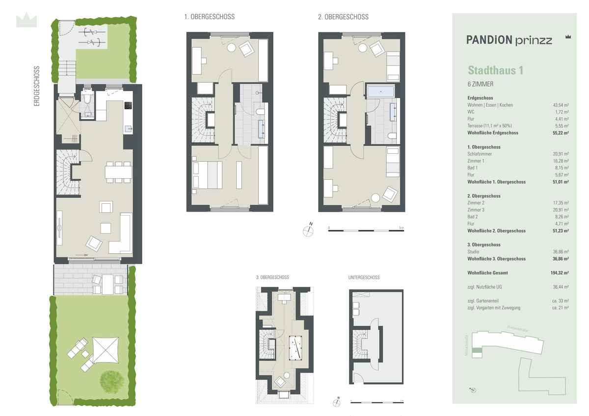+ direkte Zugänge von der Tiefgarage ins jeweilige Haus