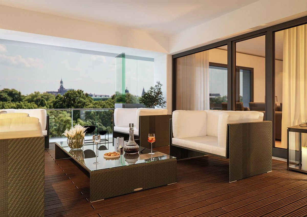 Wertvolle Details wie geschützte Balkone oder Wintergärten, durchgehende Loggien oder sonnige Dachterrassen schaffen exklusives, facettenreiches Wohnambiente für überzeugte Stadtmenschen. Aufzüge, Tiefgarage und großzügige Fahrradräume machen das Leben unkompliziert und sind hier selbstverständlich.