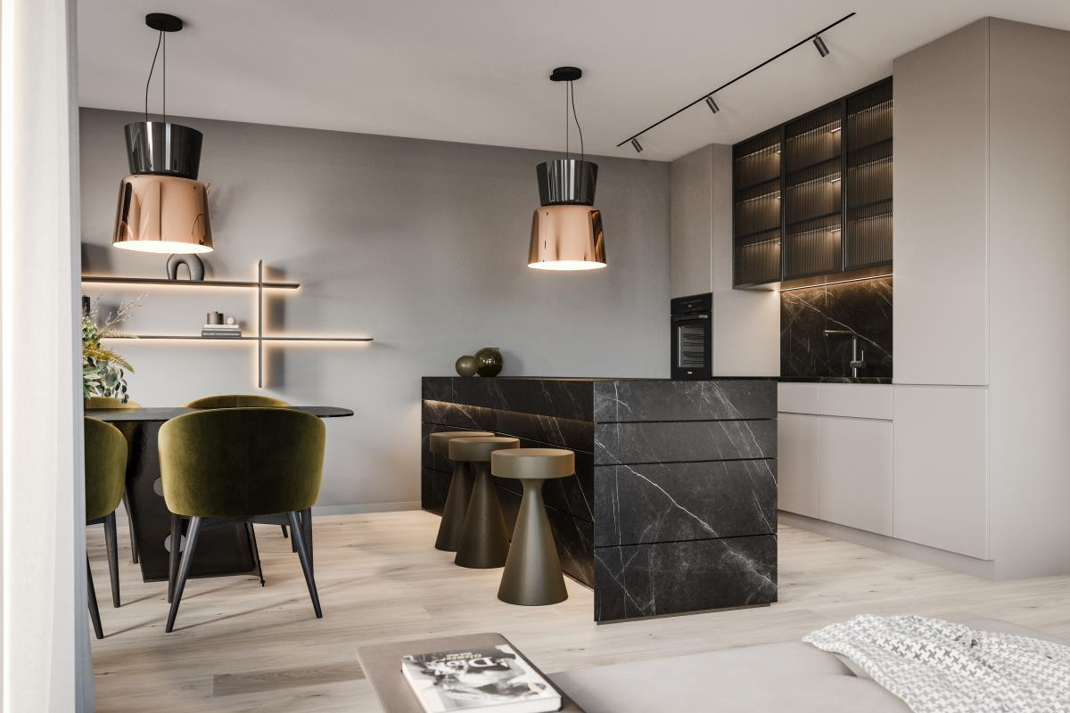 - Kommunikative, Wohn-Ess-Bereiche mit offen integrierten Küchen.