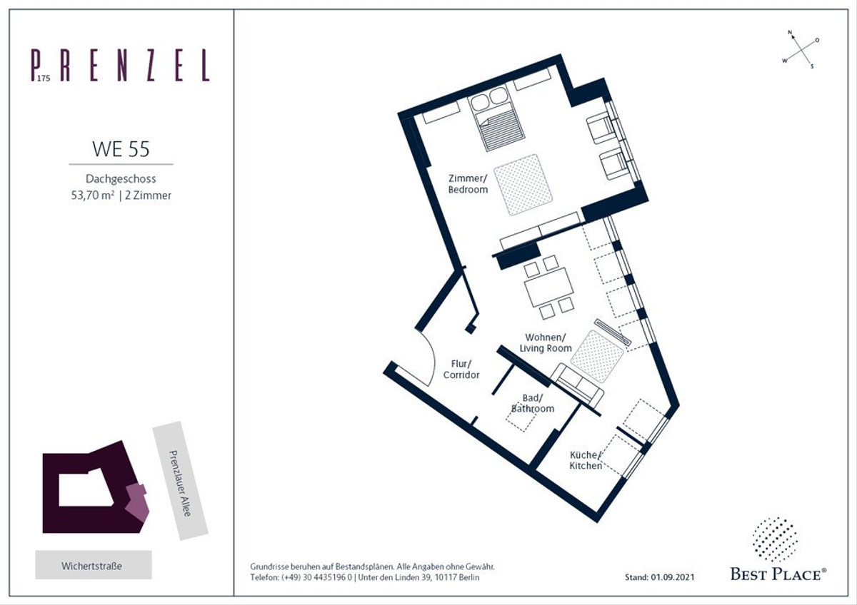 Die insgesamt 48 Wohneinheiten des „Prenzel175“ verfügen über 1 bis 5 Zimmer sowie 7 Gewerbeflächen im Erdgeschoss mit großzügigen Wohnflächen von ca. 43 bis 162 m².