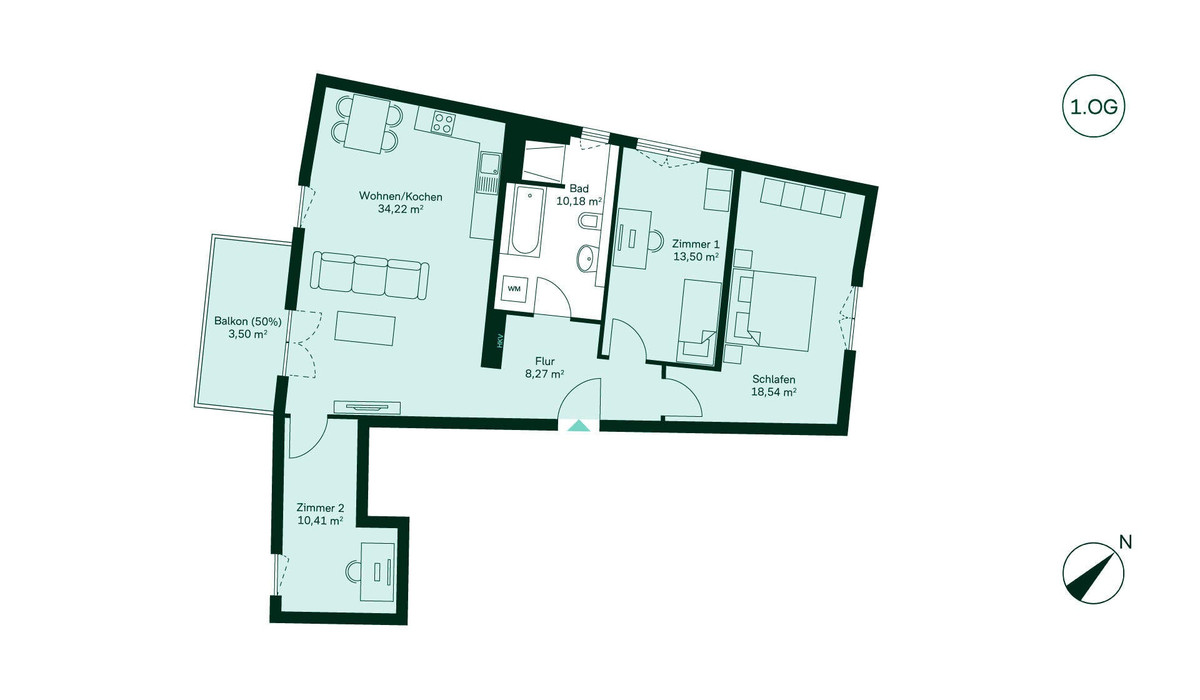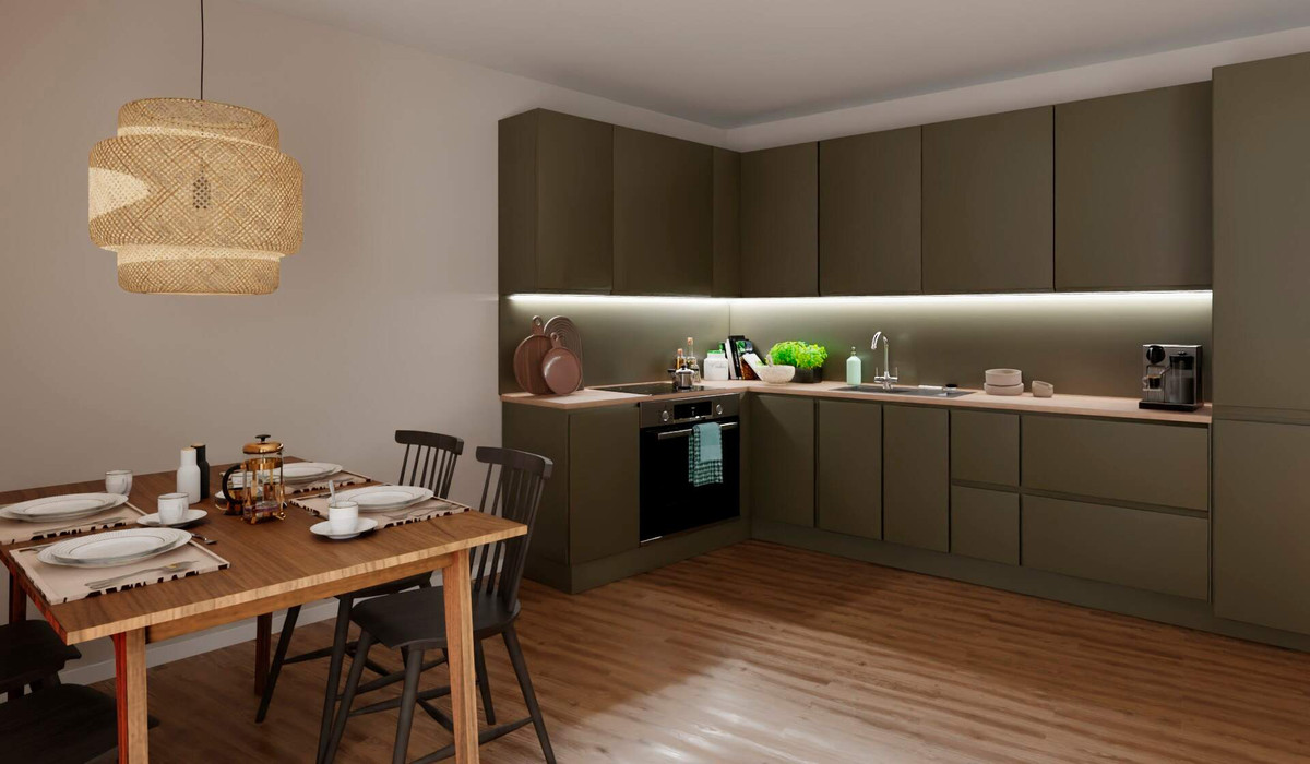 Treten Sie ein in Ihren neuen Wohntraum. Vom Flur aus gelangen Sie in das helle Wohnzimmer mit offener Küche, in der Sie Ihre Kochkünste entfalten können. Der angrenzende Balkon bietet Raum für entspannte Stunden im Freien. Zwei Schlafzimmer laden zum Wohlfühlen ein. Ein weiteres Zimmer bietet sich optimal als Arbeitszimmer an. Alternativ nutzen Sie den Raum vielleicht als Abstellraum für Ihre Vorräte oder Putzutensilien. Hier sind Sie flexibel. Das Tageslichtbad mit Badewanne, bodengleicher Dusche, Handtuchheizkörper und Fußbodenheizung vervollständigen den Wohnkomfort.