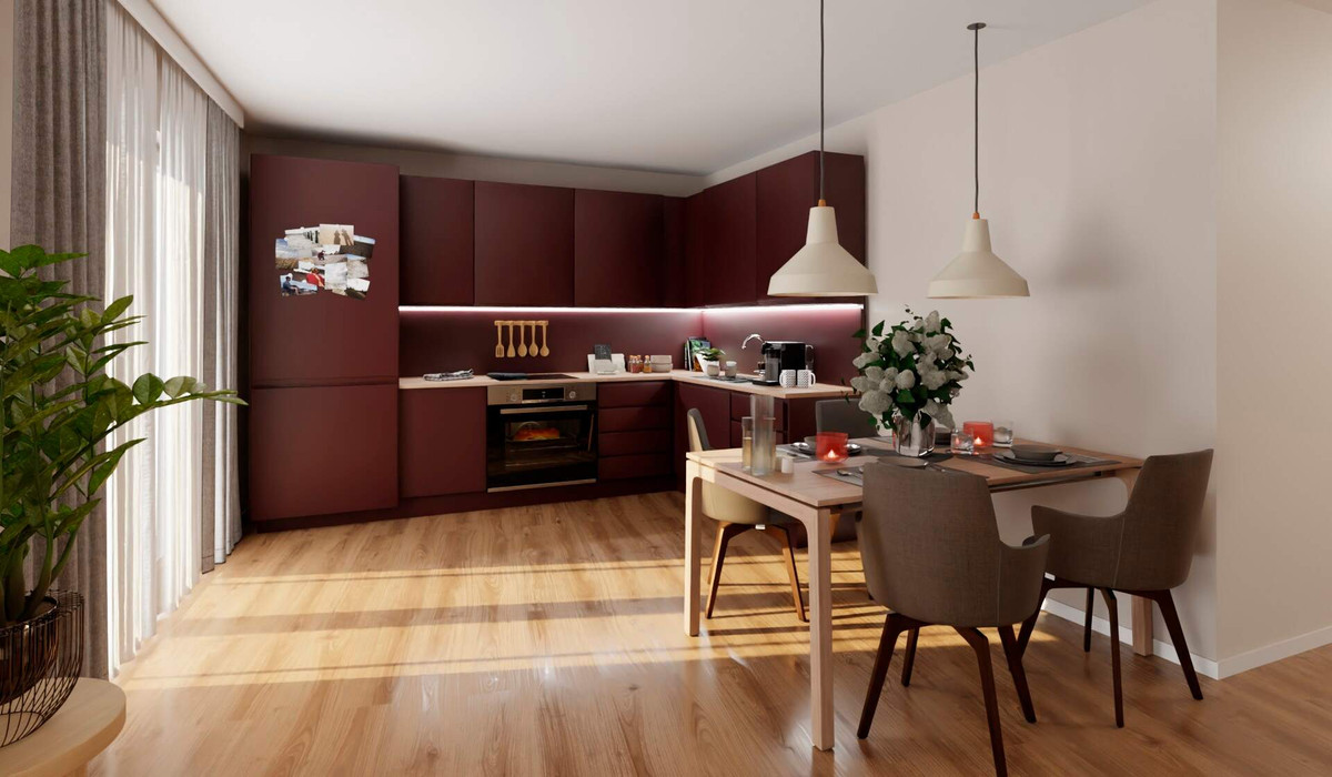 In Ihrer neuen Wohnung im zweiten Obergeschoss bietet der Flur Platz für eine Garderobe und führt Sie direkt in den großzügigen Wohn- und Essbereich mit offener Küche. Von hier aus gelangen Sie auf den Balkon, perfekt für entspannte Stunden an der frischen Luft. Drei Schlafzimmer bieten Raum für Familie, Gäste oder Homeoffice und das moderne Tageslichtbad ist mit einer Badewanne sowie einer bodengleichen Dusche ausgestattet. Ein praktischer Abstellraum in der Wohnung sorgt für zusätzlichen Komfort und ergänzt den Stauraum im Keller.