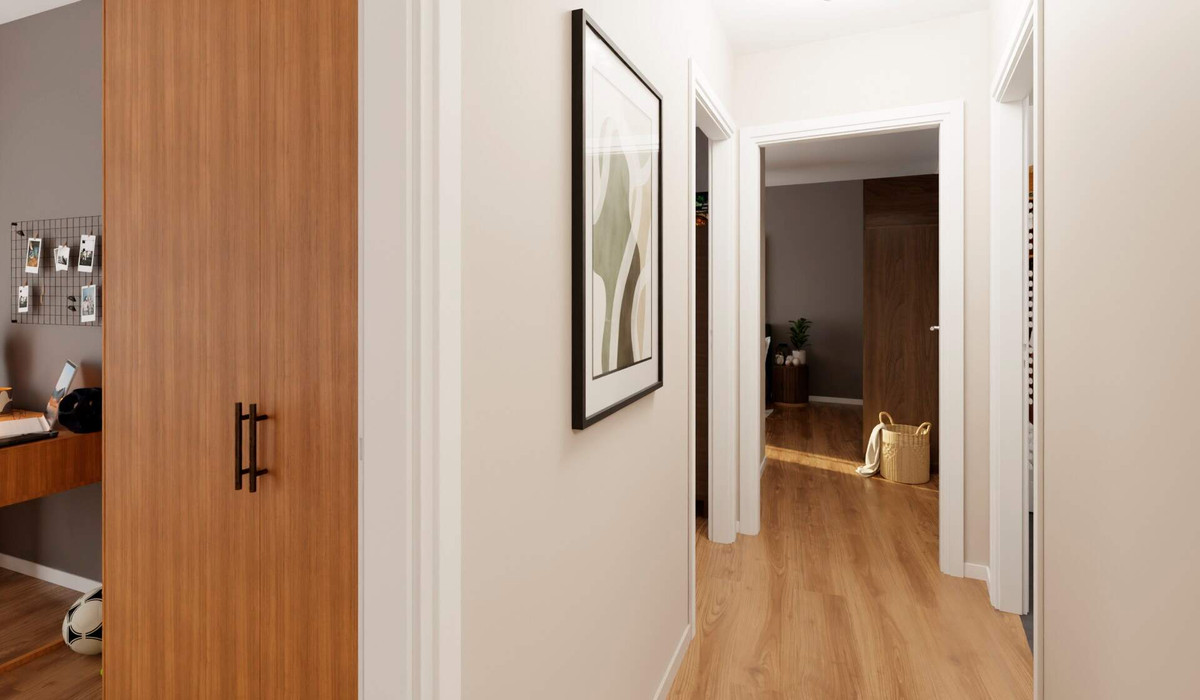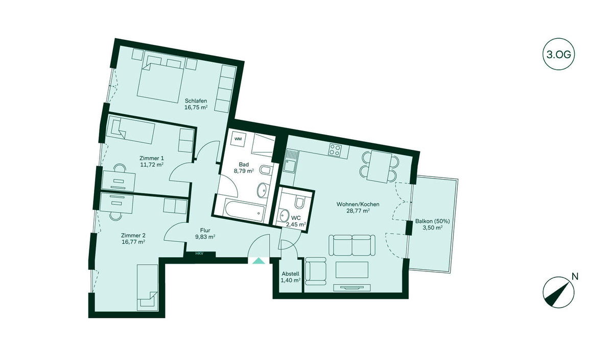 In Ihrer neuen Wohnung im dritten Obergeschoss können Sie sich auf einen großzügigen Wohn- und Essbereich mit offener Küche freuen. Hier lädt auch der Balkon zu geselligen Abenden im Freien ein. Über den Flur gelangen Sie zu drei weiteren, geschickt geschnittenen Zimmern, die Sie flexibel als Schlafzimmer, Kinderzimmer oder auch als Home Office nutzen können. Das Badezimmer ist mit Dusche und Badewanne bestens ausgestattet, zusätzlich gibt es ein Gäste-WC. Der Abstellraum sorgt für Ordnung im Alltag. Weiteren Stauraum bietet der praktische Keller, der zur Wohnung gehört.