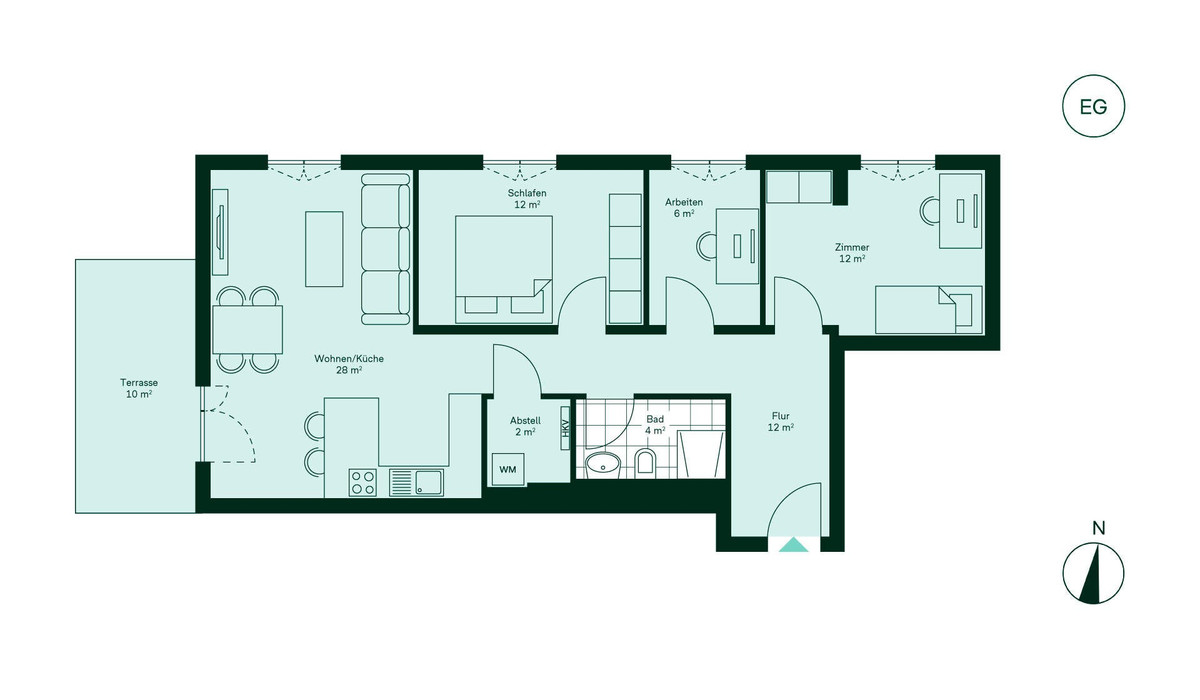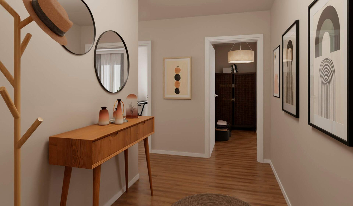 Treten Sie ein und erleben Sie den offenen Flur, der nahtlos in den Wohnbereich übergeht. Die offene Wohnküche lädt zum gemeinsamen Kochen und Genießen ein, während die Terrasse einen perfekten Rückzugsort im Freien bietet.