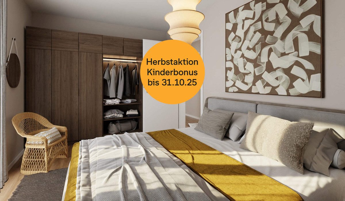 Reservieren Sie Ihre Eigentumswohnung im Neubauprojekt Quittenknick zwischen dem 30.09.2025 und 31.10.2025 und profitieren Sie vom Kinderbonus: 10.000 € je Kind – für das, was Familien wirklich wichtig ist.