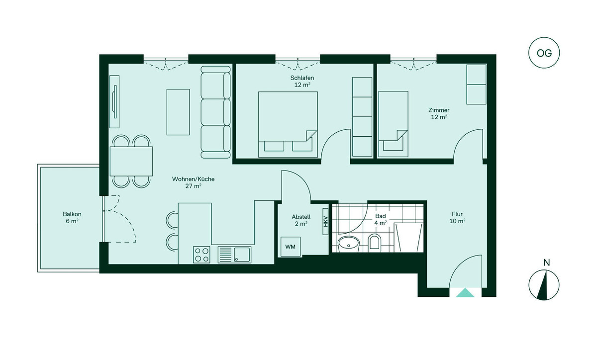 Das Badezimmer ist funktional und modern ausgestattet. Ein praktischer Abstellraum sorgt für zusätzlichen Stauraum. Genießen Sie den Ausblick auf Ihrem Balkon, der ideal für ruhige Momente ist. Diese Wohnung ist perfekt für all jene, die Wert auf Nachhaltigkeit und Komfort legen.
