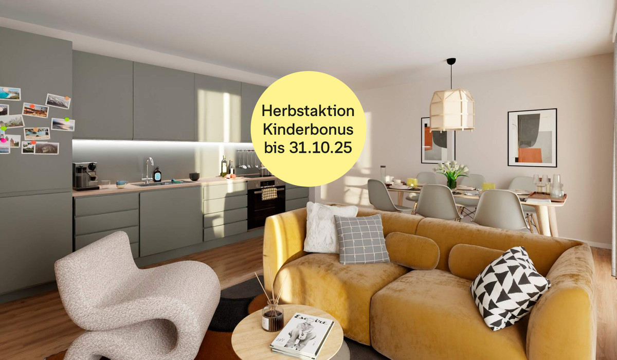 Reservieren Sie Ihre Eigentumswohnung im Neubauprojekt Quittenknick zwischen dem 30.09.2025 und 31.10.2025 und profitieren Sie vom Kinderbonus: 10.000 € je Kind – für das, was Familien wirklich wichtig ist.