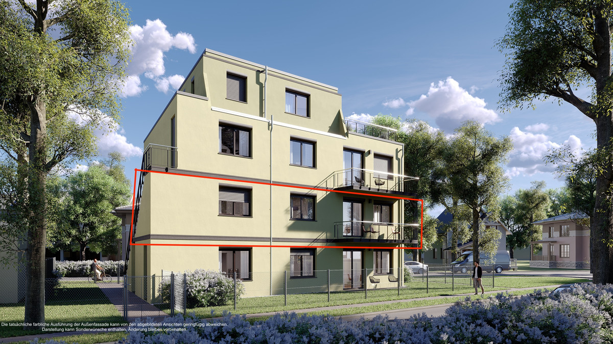 Die Fenster sind als Kunstofffenster ausgeführt und haben eine hochwertige Schallschutz-Dreifachverglasung. An der Südfassade werden die Fenster bodentief ausgeführt und haben eine Fenstertür zum Austritt auf die äußerst großzügige Südterrasse mit ca. 9qm.