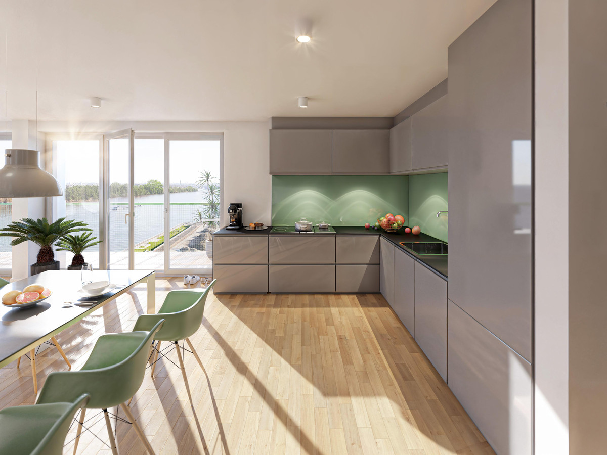 Von außen beeindruckend, überzeugt RHEINWIESEN living auch mit inneren Werten: Große Fensterflächen auf allen Gebäudeseiten lassen viel Tageslicht in die Wohnräume gelangen. Die wohlproportionierten Grundrisse lassen erkennen, dass eine gute Möblierung von Anfang an mitgedacht wurde.