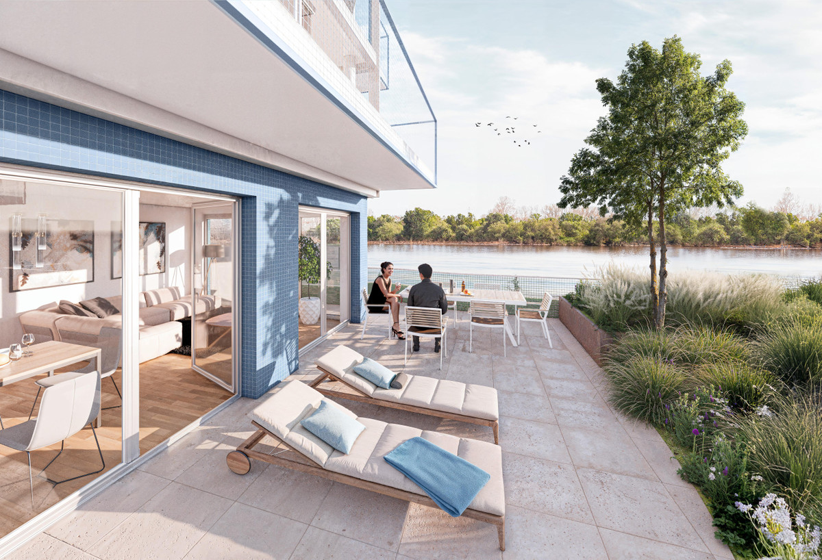 Ein Gefühl wie jeden Tag Urlaub. Urbanes Ambiente und Naturidyll. Der Blick schweift weit übers Wasser, lässt sich mit Wind und Wellen treiben. RHEINWIESEN living ist mehr als wohnen. Wer hier vor Anker geht, hat seinen Sehnsuchtsort gefunden.