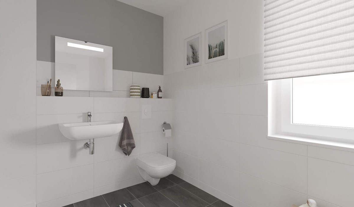 Ein Gäste-WC und ein praktischer Hauswirtschaftsraum runden das Erdgeschoss ab. Im Obergeschoss finden Sie ein Schlafzimmer und zwei weitere Räume, die sich flexibel als Kinderzimmer oder Homeoffice nutzen lassen. Das helle Tageslichtbad mit Badewanne bietet ausreichend Platz für die ganze Familie.