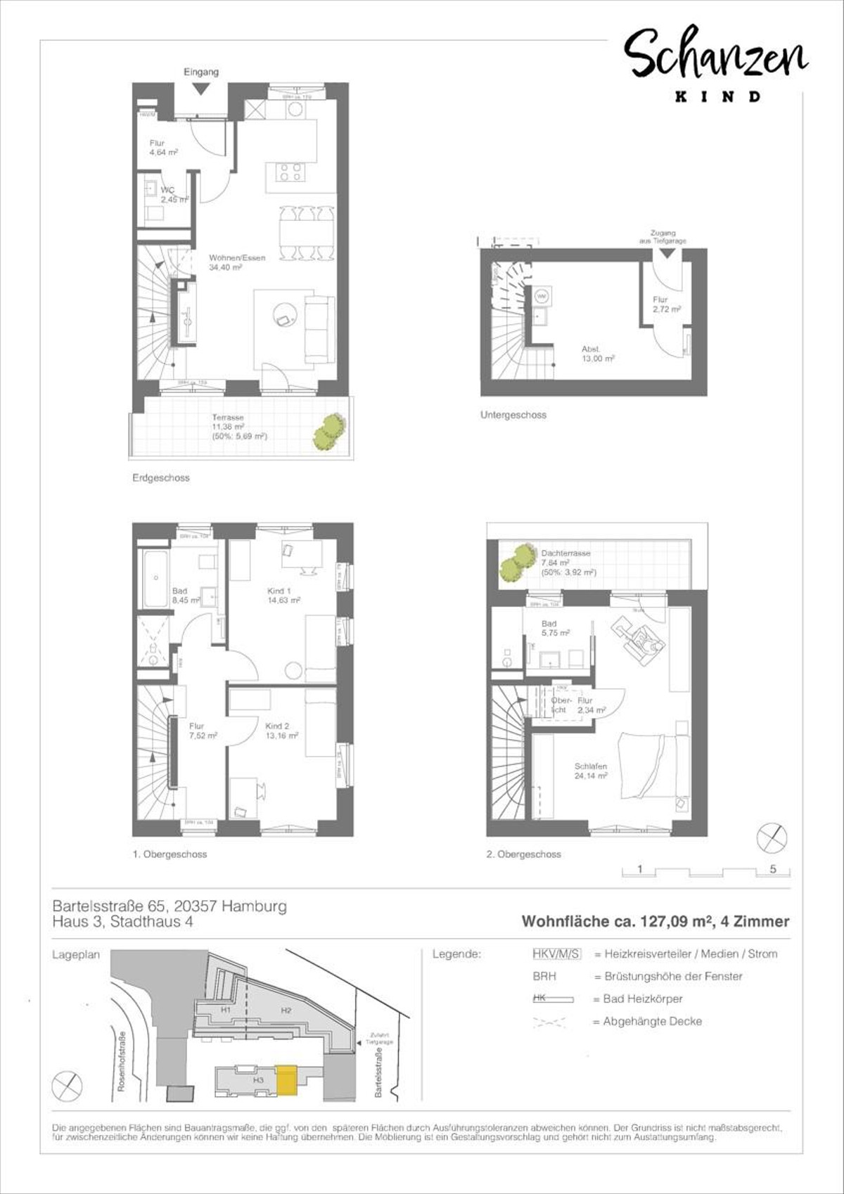 Die vier Stadthäuser verfügen alle über einen direkten Zugang aus der Tiefgarage in das jeweilige Haus. Die 4 Zimmer verteilen sich auf insgesamt drei Wohnebenen und lassen mit bis zu insgesamt 129 m² keine Wünsche offen.