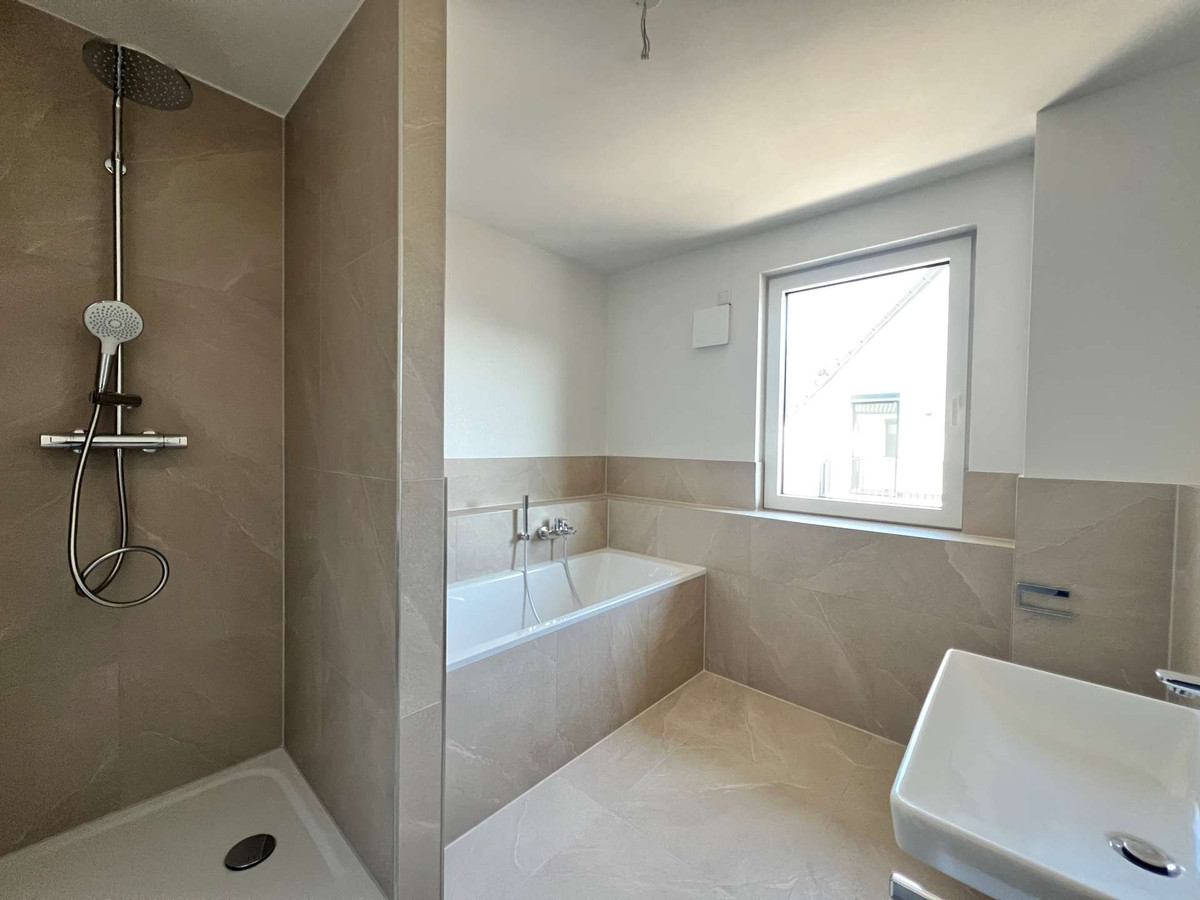 + große, bodengleiche Duschen mit Edelstahl-Wandablauf und Regendusche (gem. Planvorgabe)