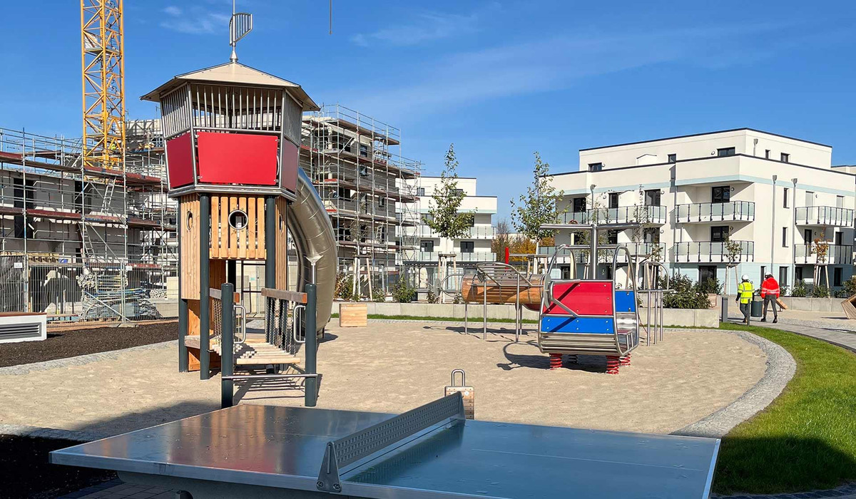 Grünes Neubauquartier an der Berliner Stadtgrenze