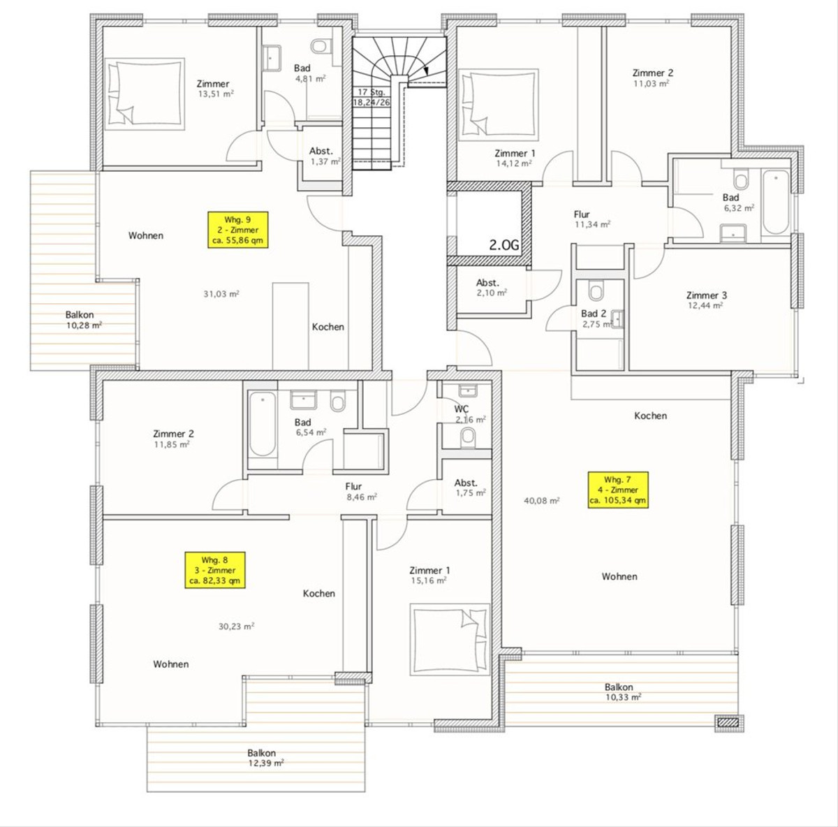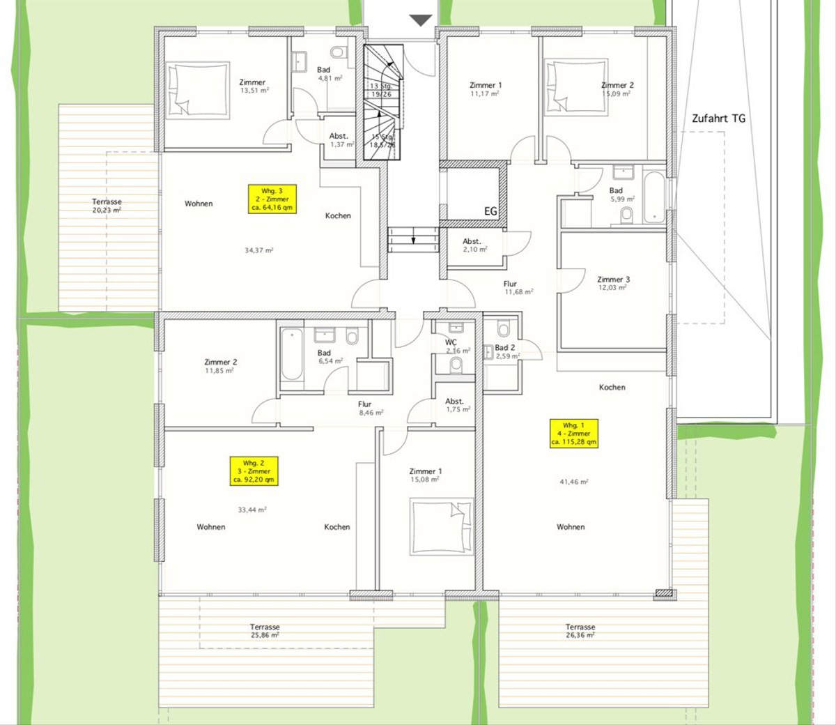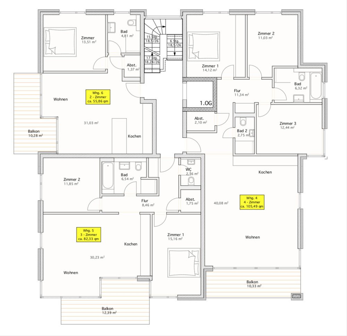 - Größen zwischen ca. 56,33 m² und 116,49 m²