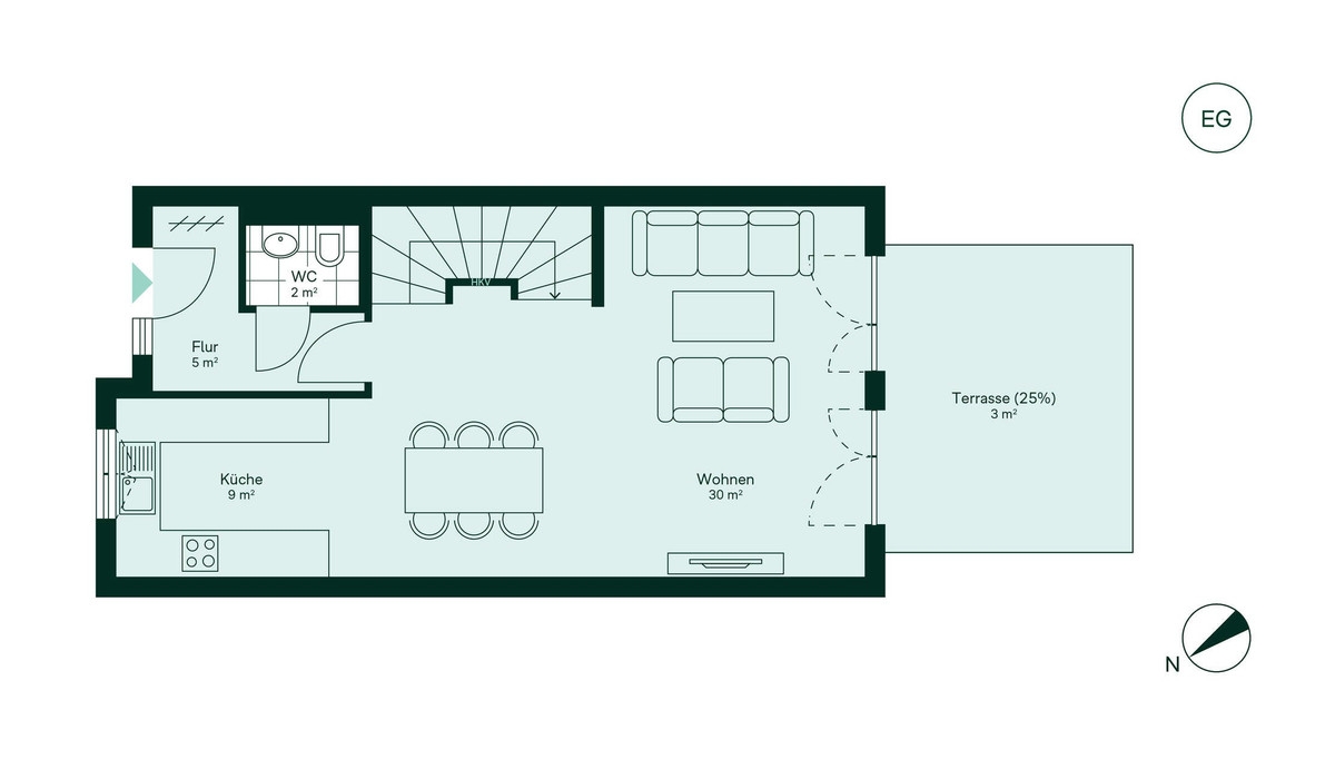 Einziehen, ankommen, gemeinsam wachsen: In diesem Reihenhaus erwarten Sie zwei großzügige Vollgeschosse, ein sonniger Garten und eine private Dachterrasse – perfekte Voraussetzungen für entspannte Familienmomente. Das Herzstück bildet der helle Wohnbereich mit offener Küche, wo Frühstücksduft auf Kinderlachen trifft. Ein separates Gäste-WC bringt Komfort in den Alltag. Ob Spiele-Nachmittage im Garten oder ruhige Abende auf der Dachterrasse – hier entstehen Erinnerungen. Mit dem Effizienzhaus 40 wohnen Sie nicht nur energiesparend, sondern genießen auch die Vorzüge einer eigenen Garage und eines zusätzlichen Stellplatzes. So beginnt Wohnglück für die ganze Familie.
