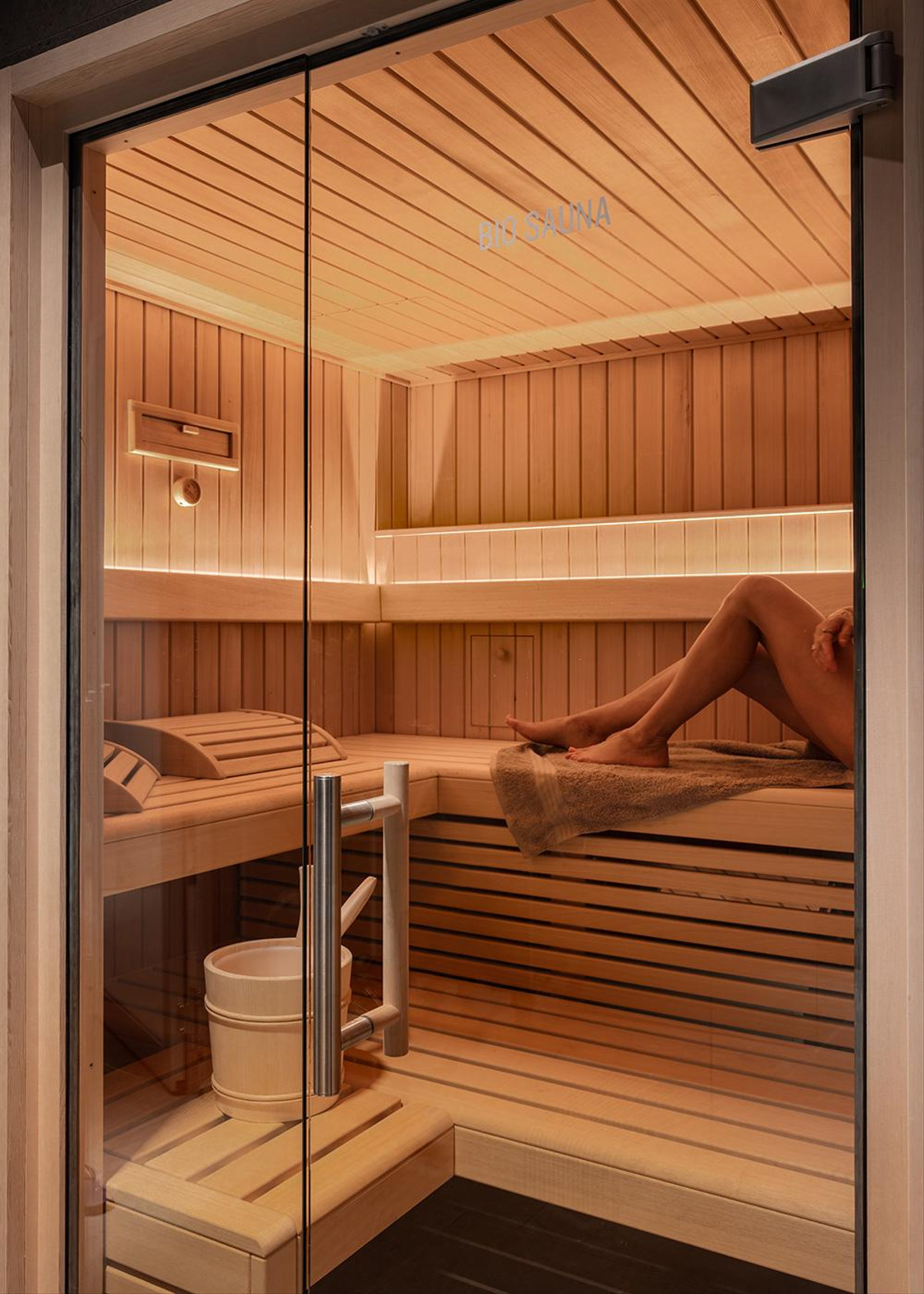Der Health Club & Spa erstreckt sich über eine Fläche von 430 m² und bietet ein Schwimmbecken mit 12 Metern Länge und Gegenstromanlage, diverse Saunen sowie einen voll ausgestatteten Fitnessraum, was minimalistisches Design mit komfortablem Lebensstil nahtlos verbindet.