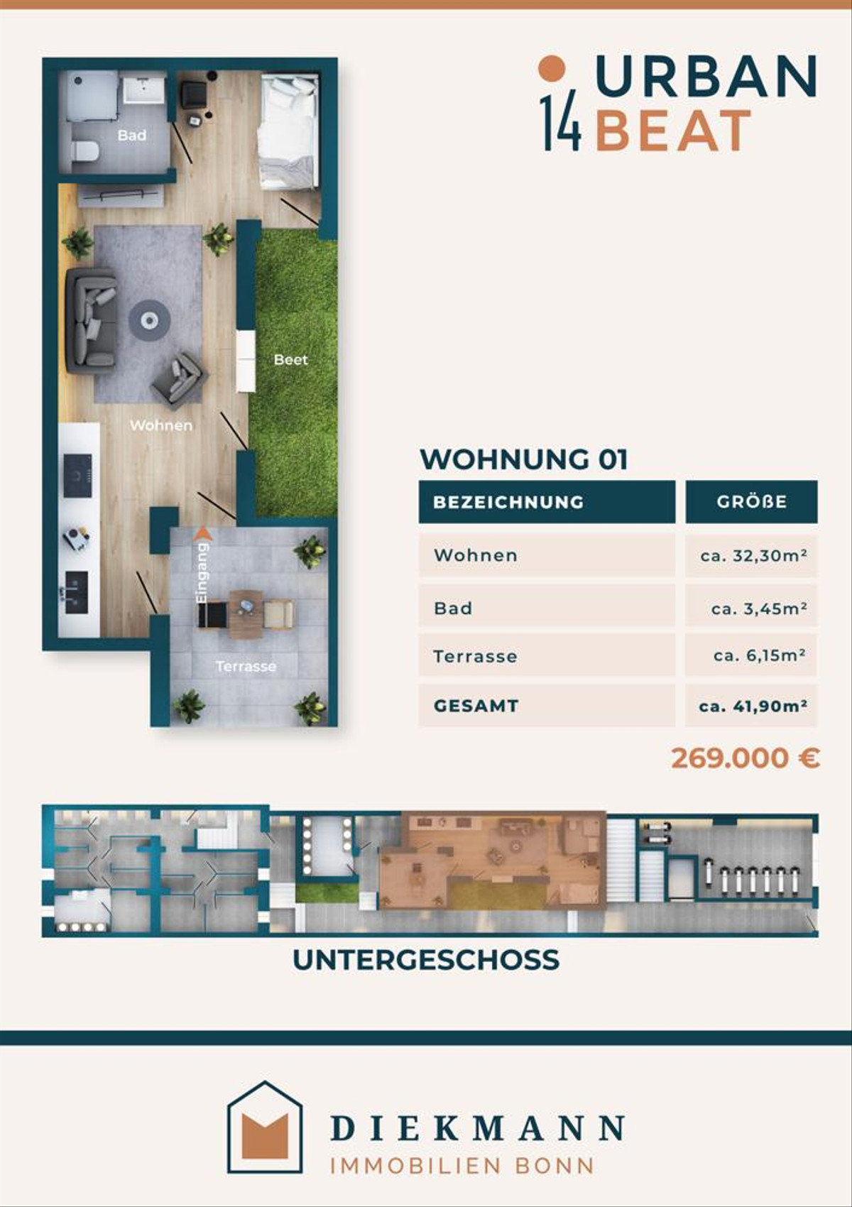 Dank zentraler Lage, hochwertiger Ausstattung und privater Terrasse eignet sich diese Einheit besonders für die möblierte Vermietung auf Zeit – etwa an Projektmitarbeiter, Pendler oder Gastwissenschaftler. Die Nachfrage nach komplett ausgestatteten Apartments in Bonner Innenstadtlage ist konstant hoch, sodass sich überdurchschnittliche Mieteinnahmen bei geringem Verwaltungsaufwand realisieren lassen.