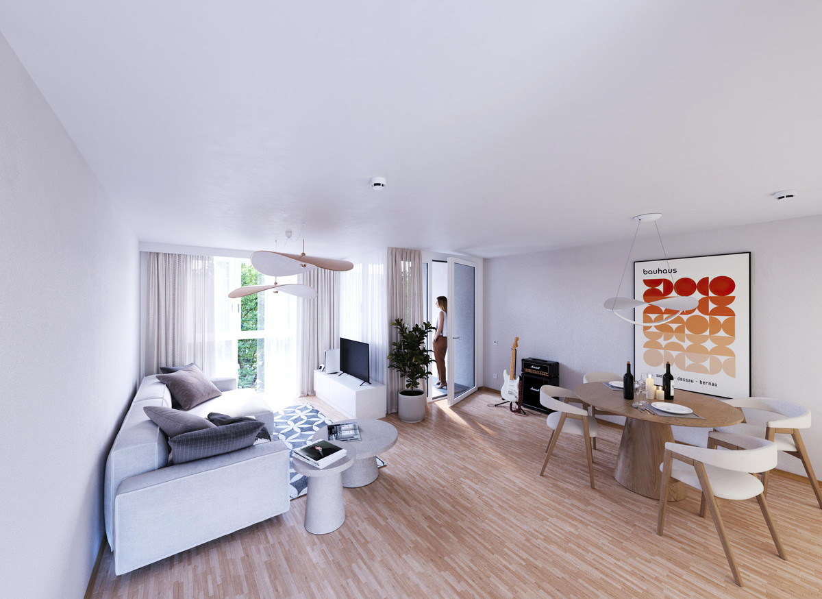Jede der 35 Neubauwohnungen ist ein gelungenes Zuhause im Herzen der Stadt. Die 1- 3-Zimmerwohnungen mit Wohnflächen zwischen ca. 38 m² und 83 m² passen ideal zu den unterschiedlichsten Zielgruppen und Lebensentwürfen.