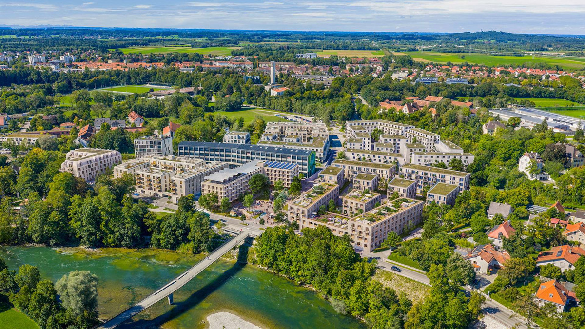 Als eines von zwei Wohngebäuden "Am Papierbach" bietet der neue Bauabschnitt exklusive Blicke über den Lech bis in die Altstadt. Durch die prominente Lage erreichen Sie über den Lady-Herkomer-Steg in wenigen Minuten die Landsberger Altstadt oder das Zentrum des Quartiers.