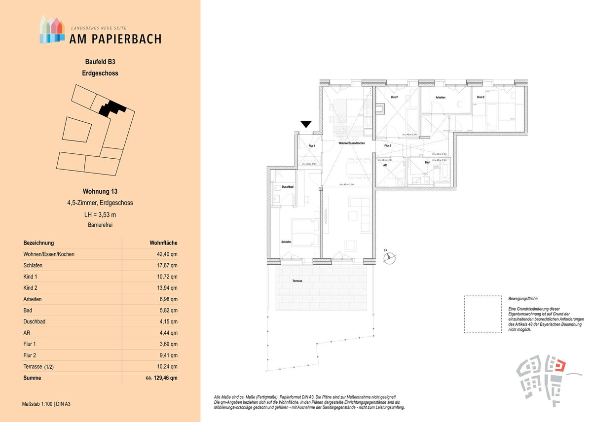 Als eines von zwei Wohngebäuden "Am Papierbach" bietet der neue Bauabschnitt exklusive Blicke über den Lech bis in die Altstadt. Durch die prominente Lage erreichen Sie über den Lady-Herkomer-Steg in wenigen Minuten die Landsberger Altstadt oder das Zentrum des Quartiers.