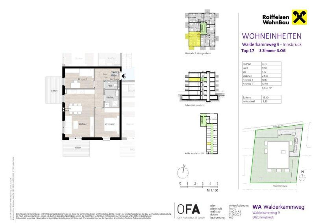 In urbaner Lage am Walderkammweg 9 hat die Raiffeisen WohnBau im Osten von Innsbruck 24 qualitäts- und geschmackvolle Wohnungen errichtet, welche seit Juni 2024 bezugsfertig sind. Diese bestechen durch funktionale Grundrisse mit Wohnungsgrößen zwischen ca. 32 m² und 109 m², gepaart mit höchster Wohnqualität in urbaner Lage. Zudem verfügen alle Einheiten über Freiflächen, die den Wohnraum gekonnt nach außen erweitern. Die hauseigene Tiefgarage bietet ausreichend Platz und wird mit Vorbereitung für E-Ladestationen ausgeführt. Die direkte Nähe zu Kindergarten und Volksschule bietet beste Voraussetzungen für Familien, die ausgezeichnete Infrastruktur verbindet Innenstadt, Naherholung und Freizeitgestaltung - keine andere Stadt vereint Natur und urbanes Leben so gekonnt miteinander wie Innsbruck.