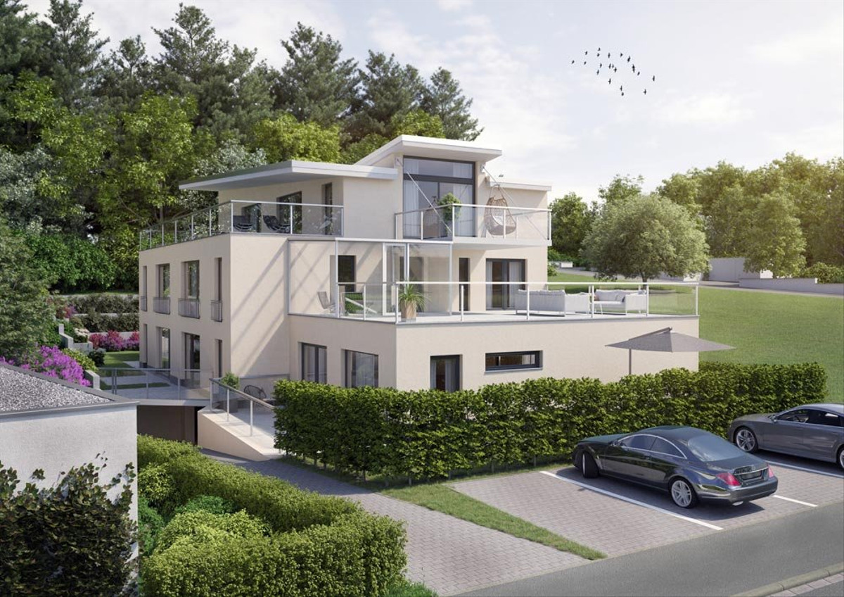 Die schlichte und moderne Architektursprache bietet großzügige Wohnungsschnitte mit attraktiven Flächen im Innen- und Außenraum. Im Haus entstehen dadurch Zwei- bis Vier-Zimmer-Wohnungen in attraktiver Wohnlage unweit von Aschaffenburg. Die Wohnungen bestechen durch einen großzügigen Wohn-Ess-Bereich mit offener Küche und weitläufigen Terrassen sowie Badezimmer und Gäste-WC unweit des Wohnraumes. Dank der fünf Außenstellplätze und der sieben Stellplätze in der Tiefgarage ist ein sicherer Abstellort für Ihr Fahrzeug jederzeit gewährleistet.