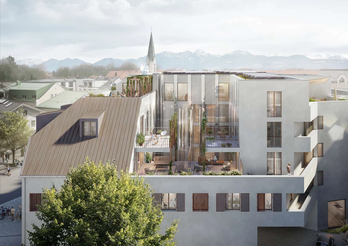 über unterschiedlich große Wohnungen in klassischem Design und mit großzügigen, wettergeschützten Außenbereichen bis zu drei Penthäusern mit eigener Dachterrasse. Weitere tragende Rollen: lichte, reflektierende Kunst, ausgewählte Materialien, innovative Mobilitäts- und nachhaltige Energiekonzepte und eine Dachterrasse, die allen Bewohnern offensteht.