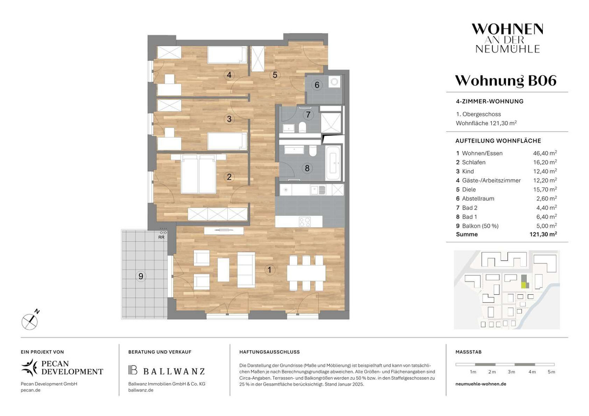Alle Informationen, Angaben und Darstellungen (auf dieser Webseite) wurden mit größter Sorgfalt zusammengetragen. Eine Gewähr für deren Vollständigkeit und Richtigkeit kann jedoch nicht übernommen werden. Die zeichnerischen Darstellungen entsprechen dem vorläufig Planungsstand. Einzelne Änderungen bleiben ausdrücklich vorbehalten. Die in den Visualisierungen dargestellten Möblierungen stellen nur Einrichtungsvorschläge dar und sind nicht Vertragsbestandteil. Für die Ausstattung ist der Text der Baubeschreibung zum Vertrag maßgebend. Änderungen bleiben vorbehalten. Stand: Januar 2025. © Pecan Development