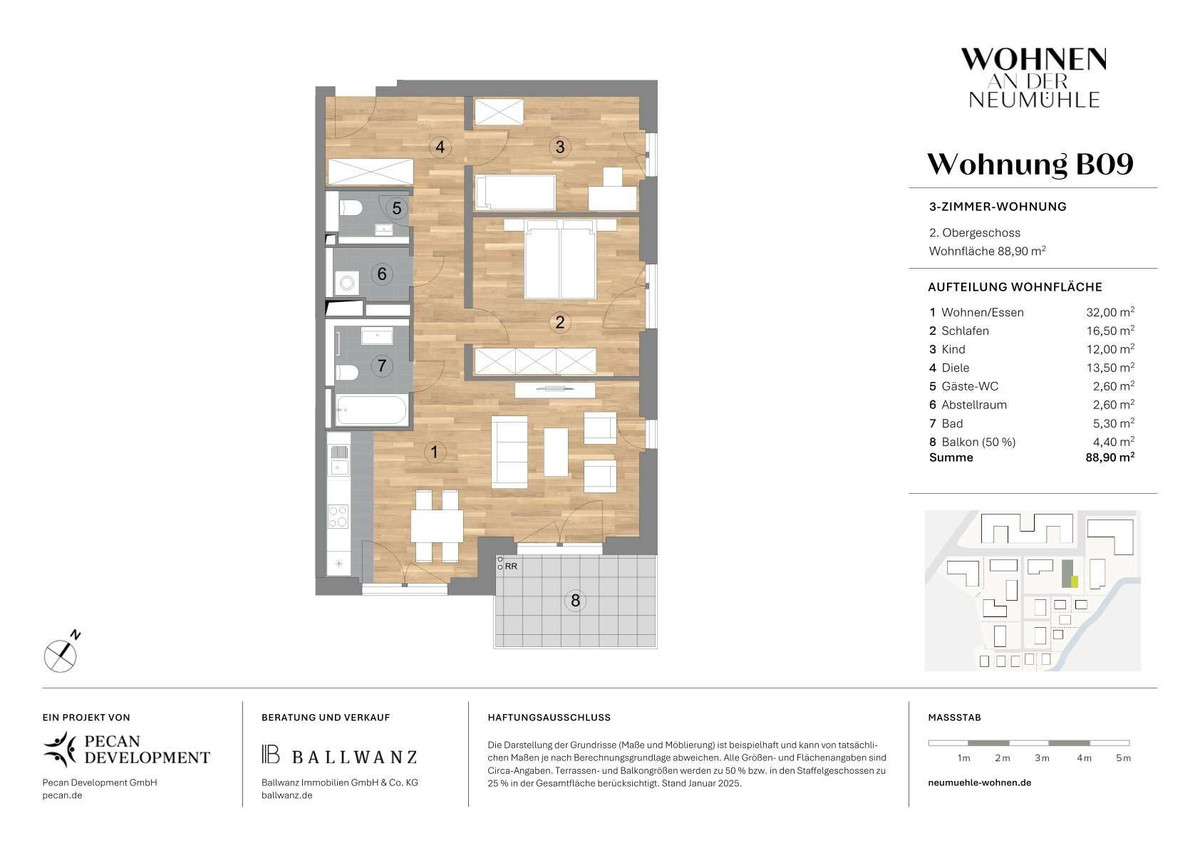 Alle Informationen, Angaben und Darstellungen (auf dieser Webseite) wurden mit größter Sorgfalt zusammengetragen. Eine Gewähr für deren Vollständigkeit und Richtigkeit kann jedoch nicht übernommen werden. Die zeichnerischen Darstellungen entsprechen dem vorläufig Planungsstand. Einzelne Änderungen bleiben ausdrücklich vorbehalten. Die in den Visualisierungen dargestellten Möblierungen stellen nur Einrichtungsvorschläge dar und sind nicht Vertragsbestandteil. Für die Ausstattung ist der Text der Baubeschreibung zum Vertrag maßgebend. Änderungen bleiben vorbehalten. Stand: Januar 2025. © Pecan Development